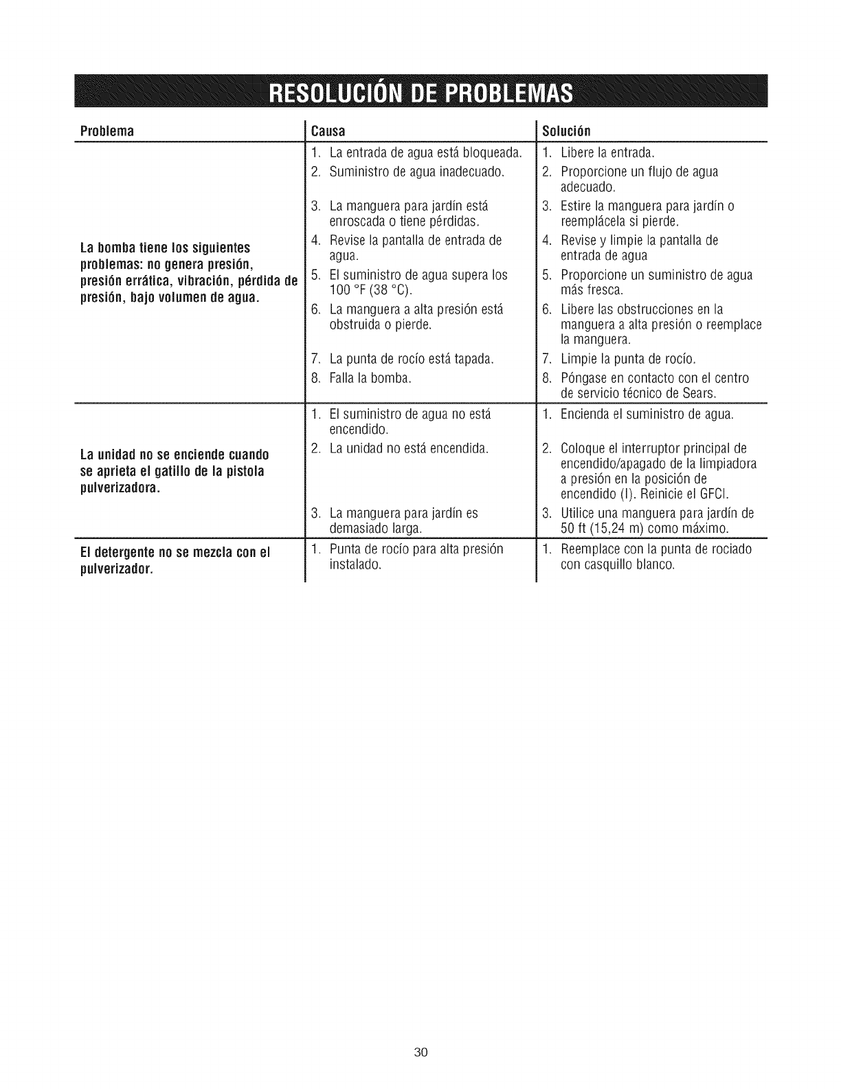 problemas:no genera presi6n,
