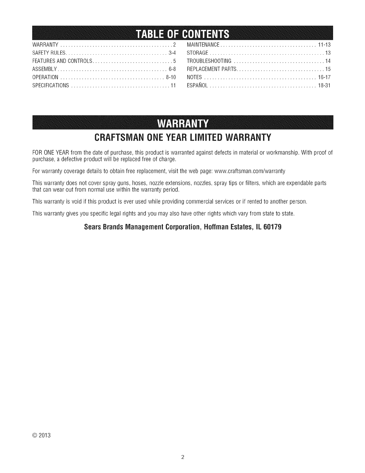 WARRANTY.......................................... 2