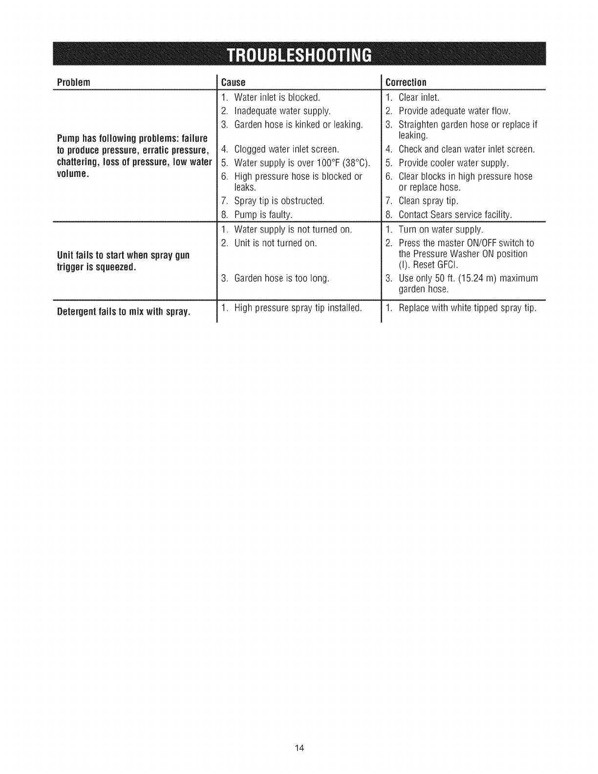 TROUBLESHOOTING.................................. 14