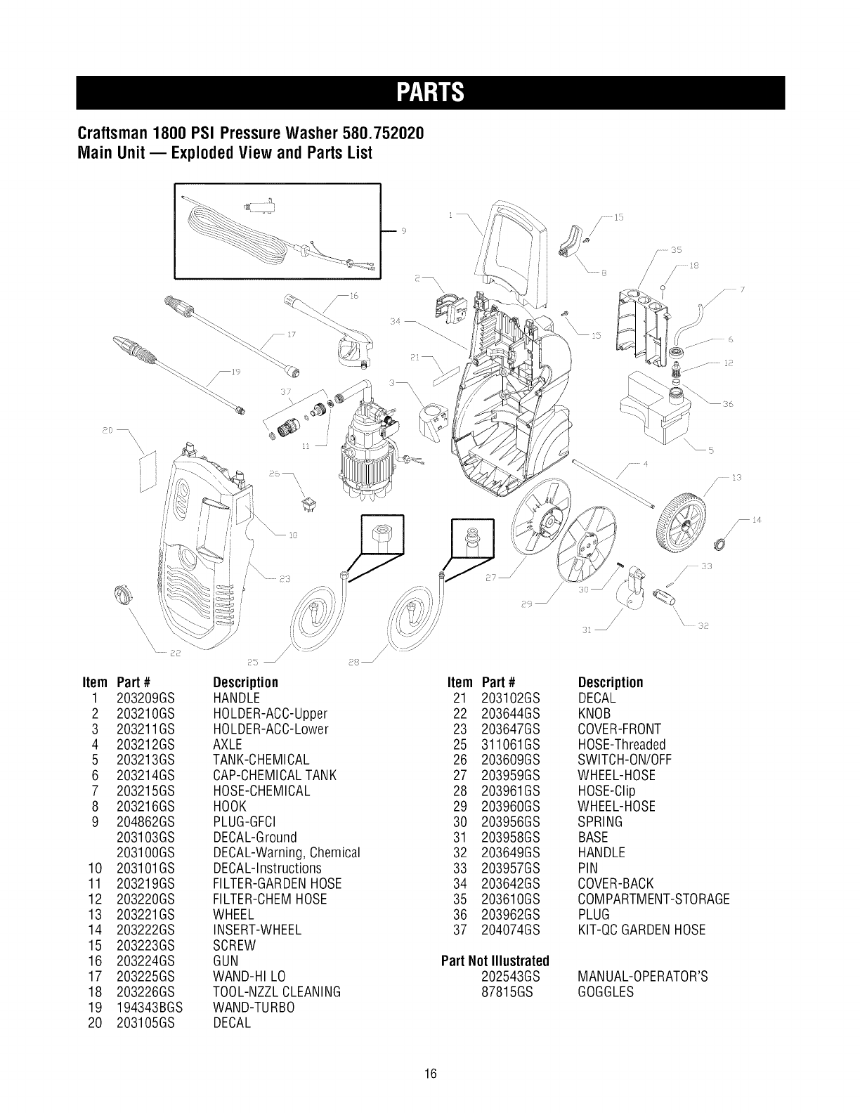 User Manual: Craftsman 580752020 580752020 CRAFTSMAN ELECTRIC PRESSURE WASHER - Manuals and Guides View the owners manual for your CRAFTSMAN ELECTRIC PRESSURE WASHER #580752020. Home:Lawn & Garden Parts:Craftsman Parts:Craftsman ELECTRIC PRESSURE WASHER Manual