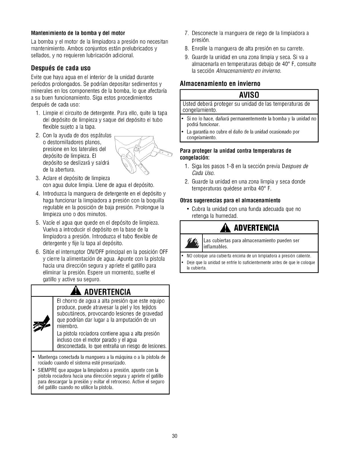 • NO coloque una cubierta encima de un limpiadora a presi6n caliente.
