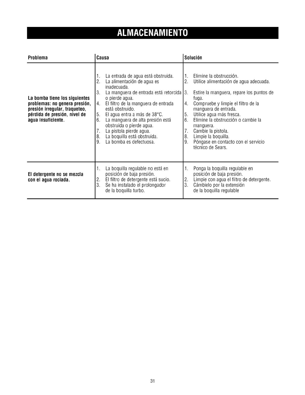 6. Elimine la obstrucci6n o cambie la