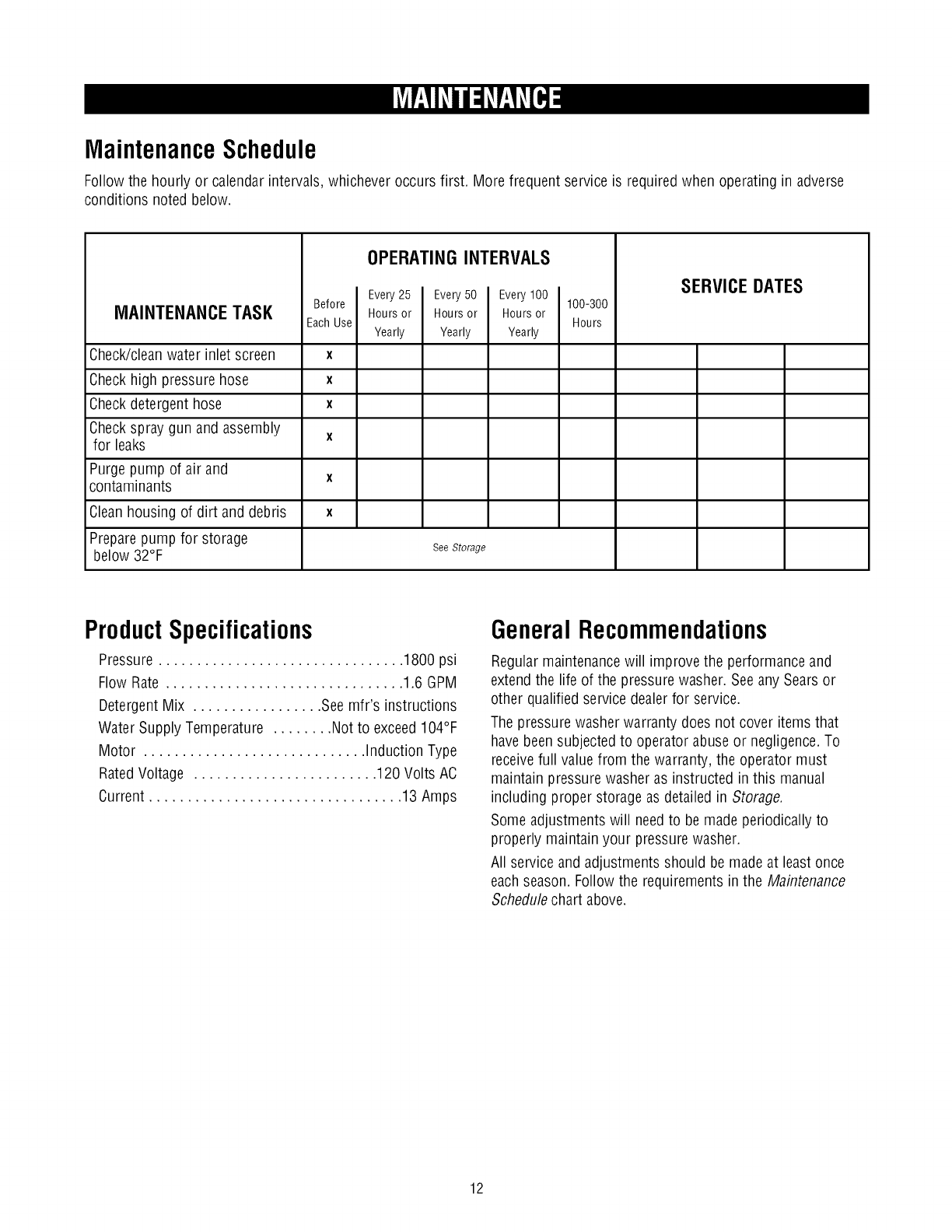 MAINTENANCE................................. 12