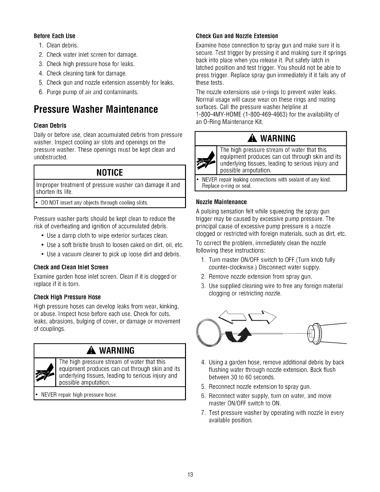• NEVERconnect high pressure hose to nozzleextension.