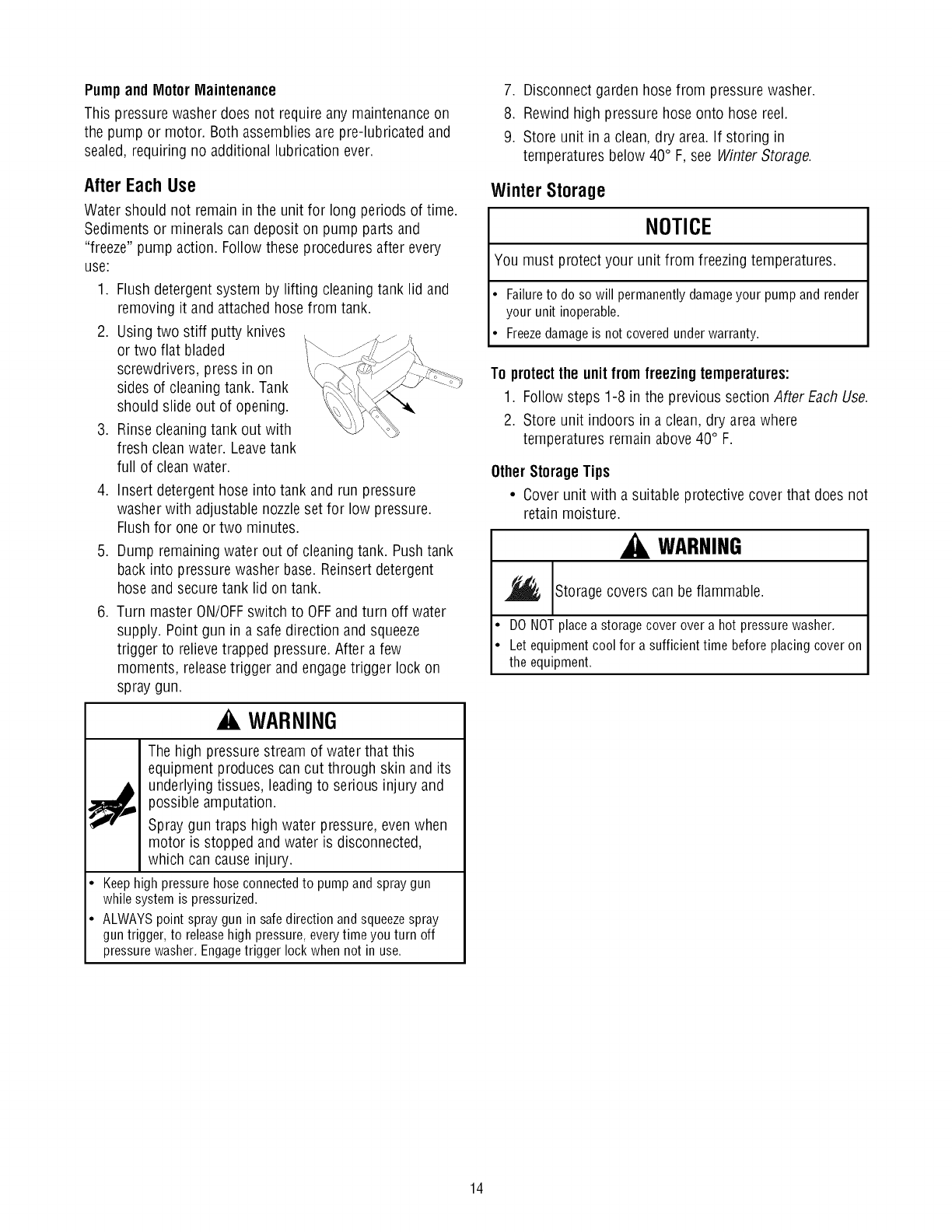 • Be extremely careful if you must use the pressure washer from a