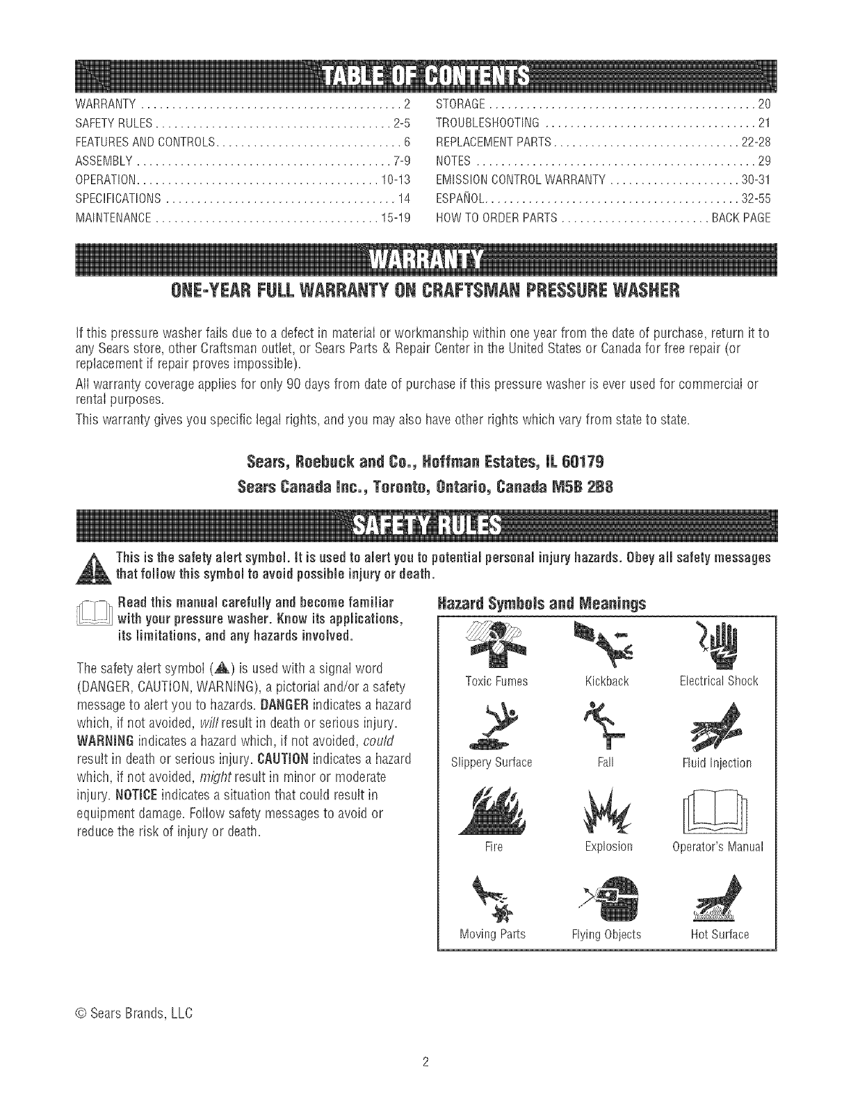 Craftsman 580752030 User Manual PRESSURE WASHER Manuals And Guides L0704362