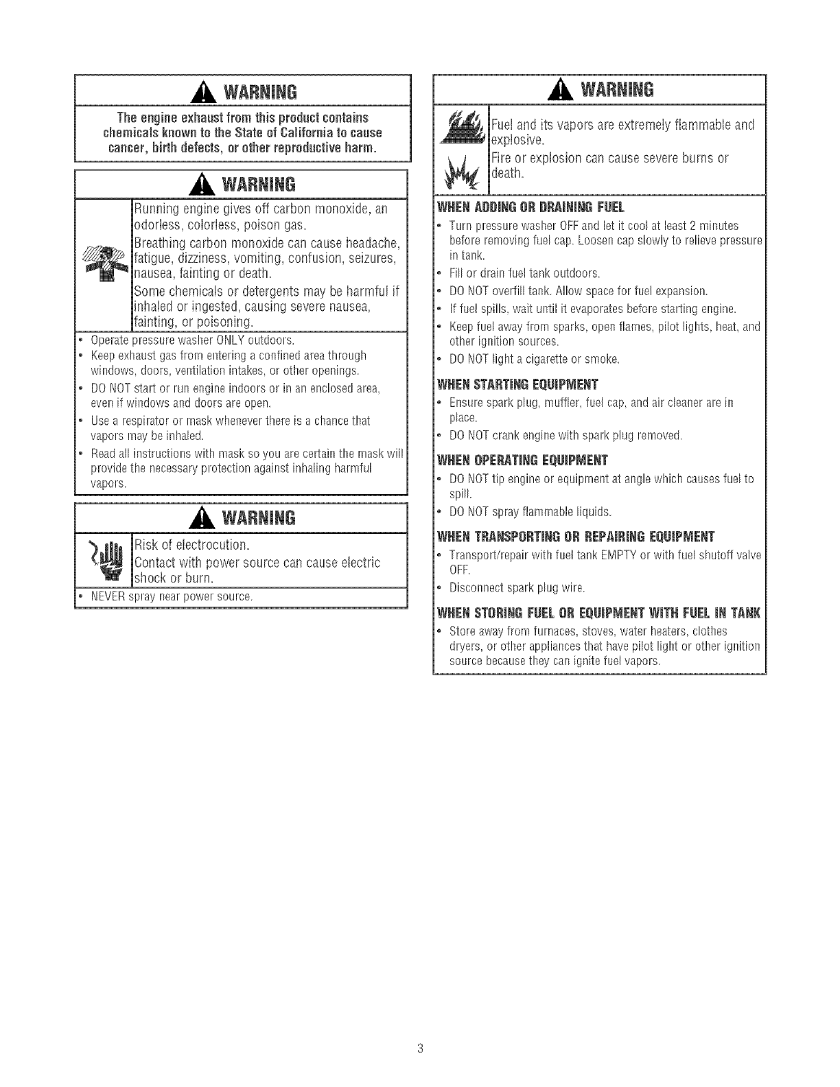o DO NOTstart or run engine indoors or in an enclosed area,