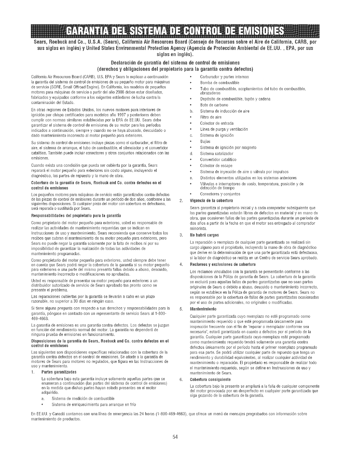 sag@ se estabbce en la PClizade garanth de motores de Sears. Sears no