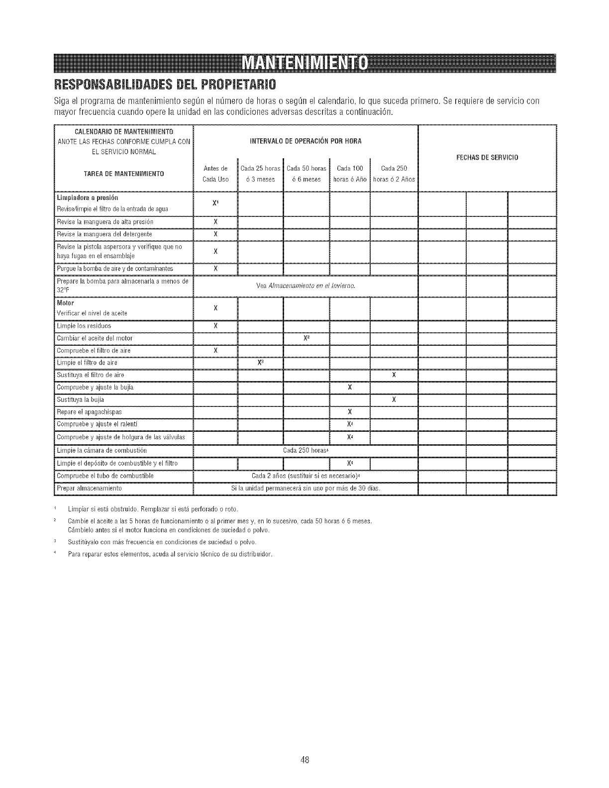el mantenimiento requerido, segSn se define en Instrucciones de use y