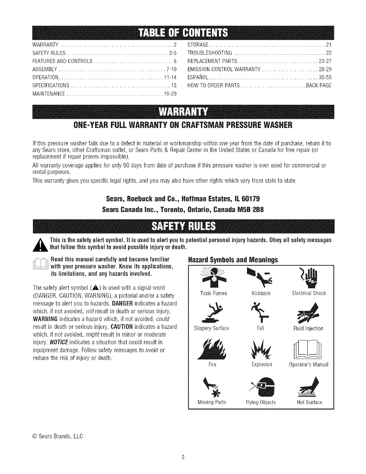 Craftsman 580752131 User Manual PRESSURE WASHER Manuals And Guides L0806054