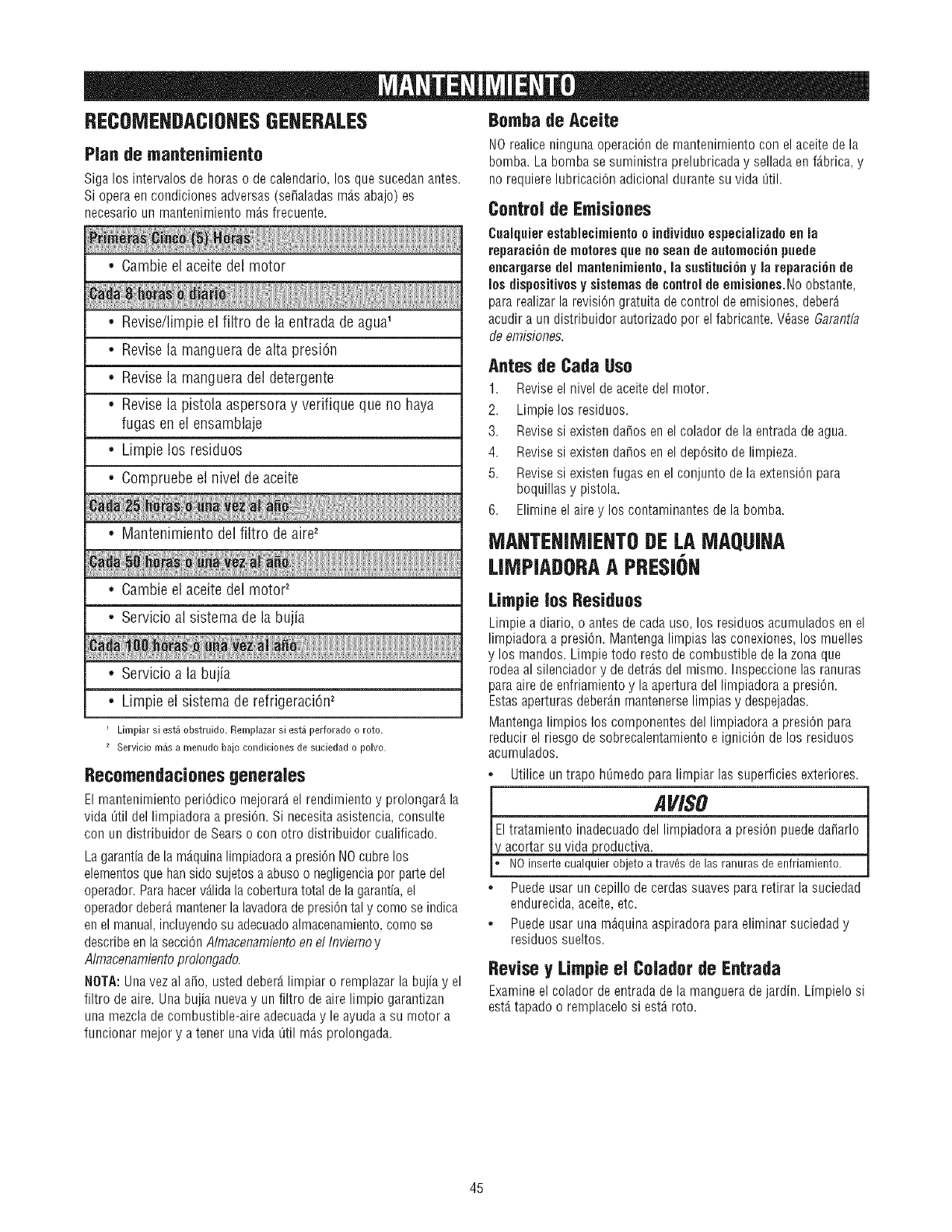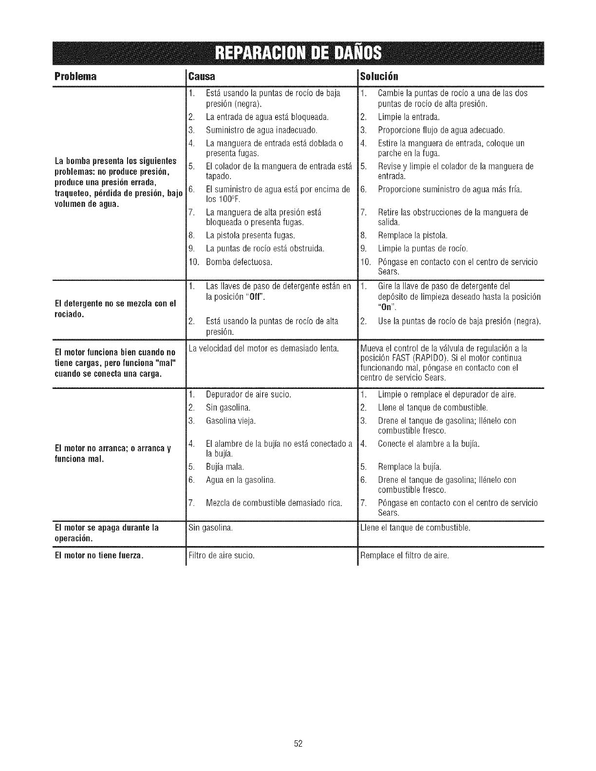 mantenimiento o reparaci6n. El propietario es responsable de realizar todo