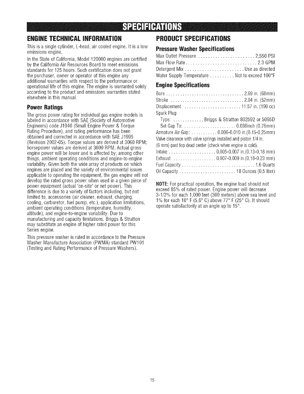 SPECIFICATIONS..................................... 15
