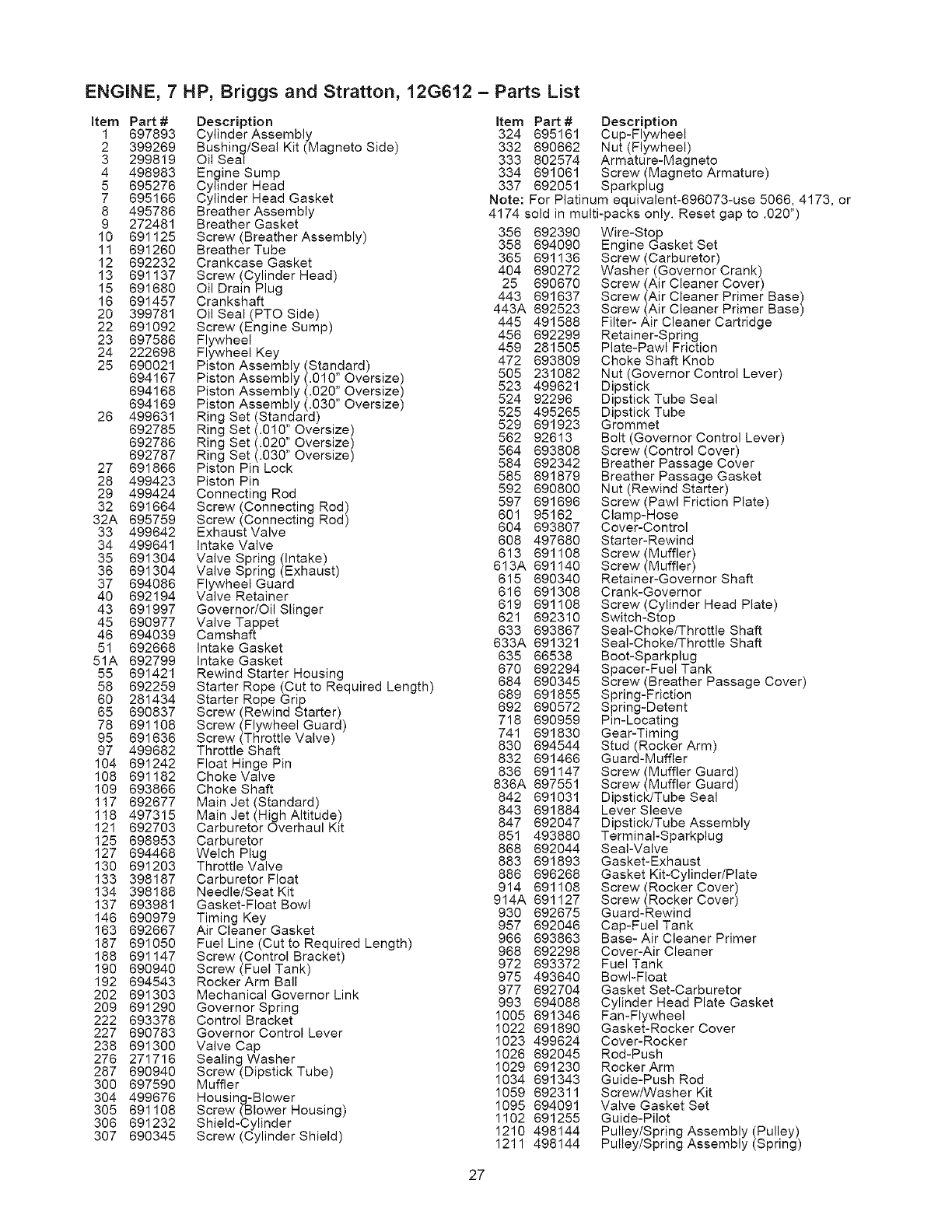 • Parts