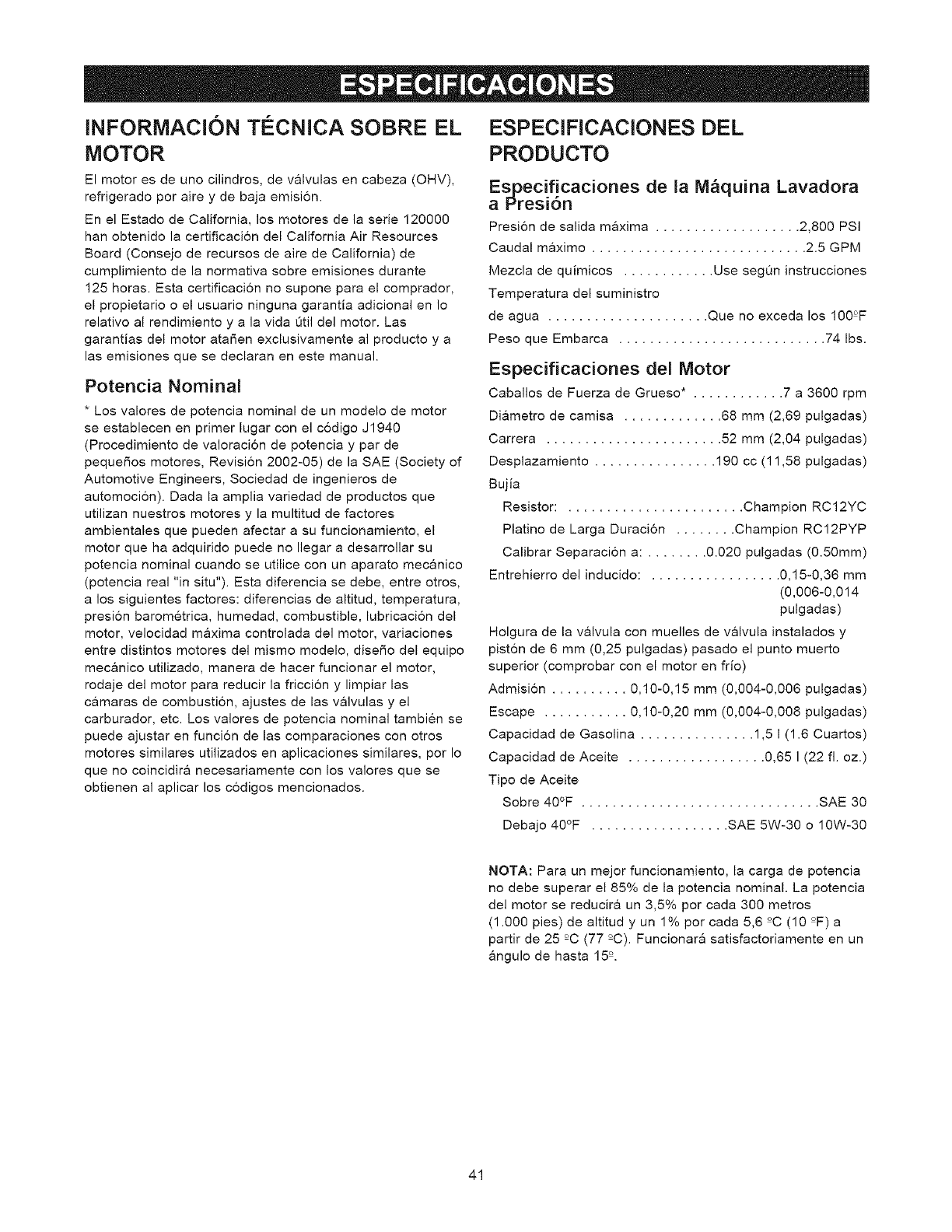 aire. El fabricante del motor ofrece esta informacion al