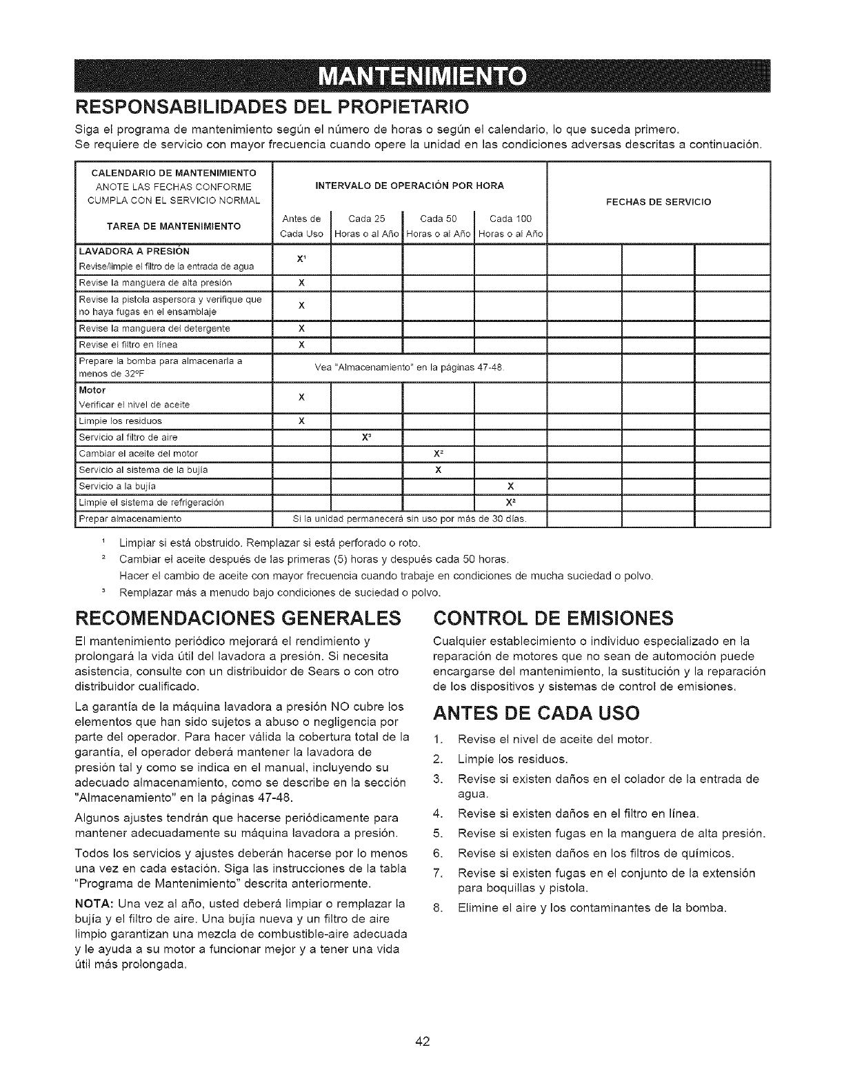 250 horas y A = 500 horas. Para motores de 225 cc o m&s,