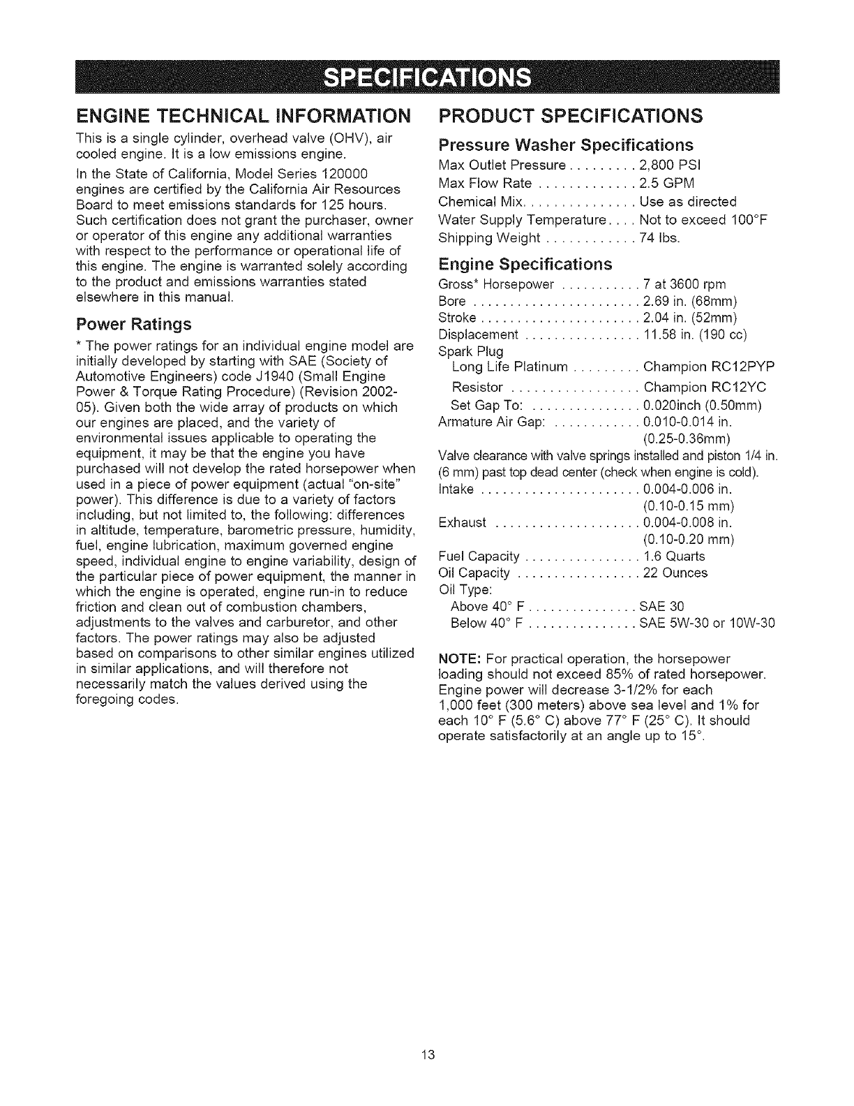 SPECIFICATIONS ............................... 13