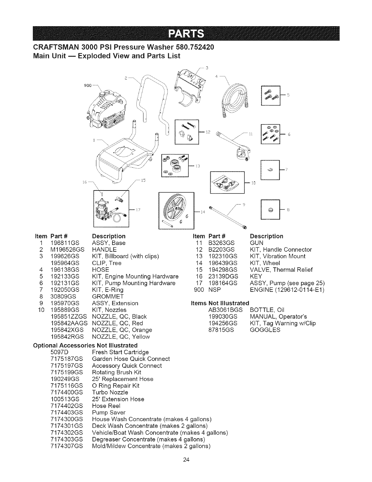 User Manual: Craftsman 580752420 580752420 CRAFTSMAN PRESSURE WASHER - Manuals and Guides View the owners manual for your CRAFTSMAN PRESSURE WASHER #580752420. Home:Lawn & Garden Parts:Craftsman Parts:Craftsman PRESSURE WASHER Manual