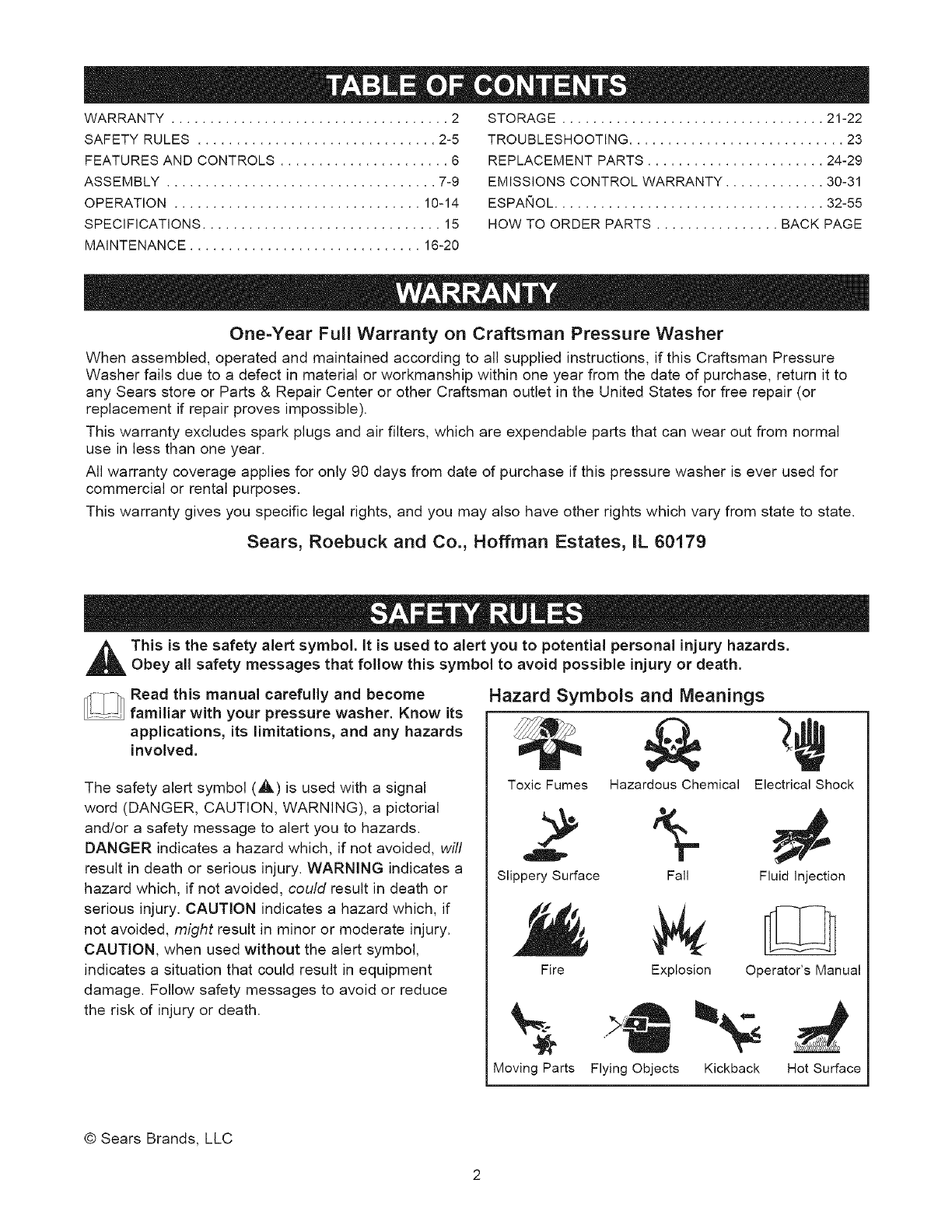 CRAFTSMAN Power Washer, Gas Manual L0604841 CRAFTSMAN Power Washer, Gas Owner's Manual, CRAFTSMAN Power Washer, Gas installation guides