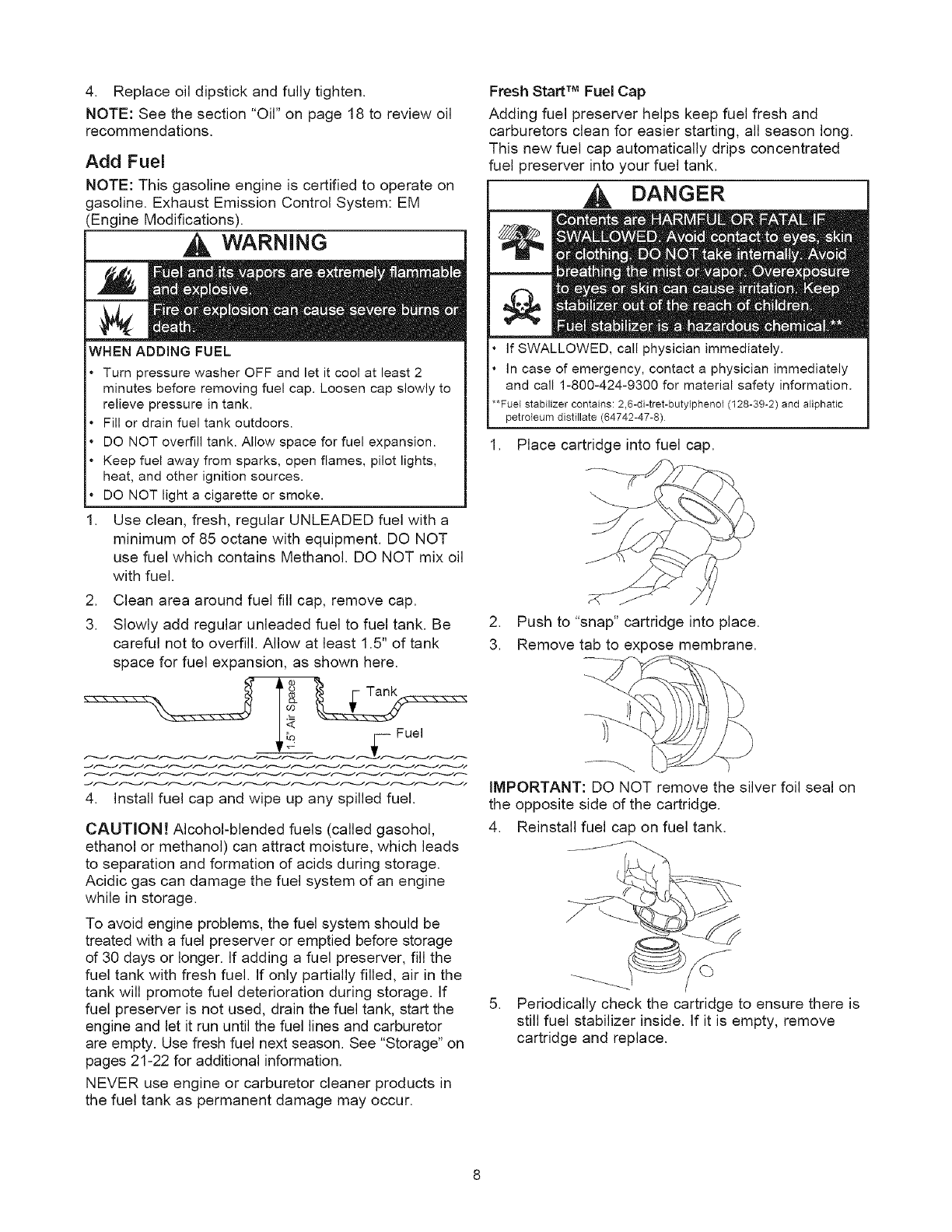 Fresh Start TM fuel cap is designed to hold a cartridge
