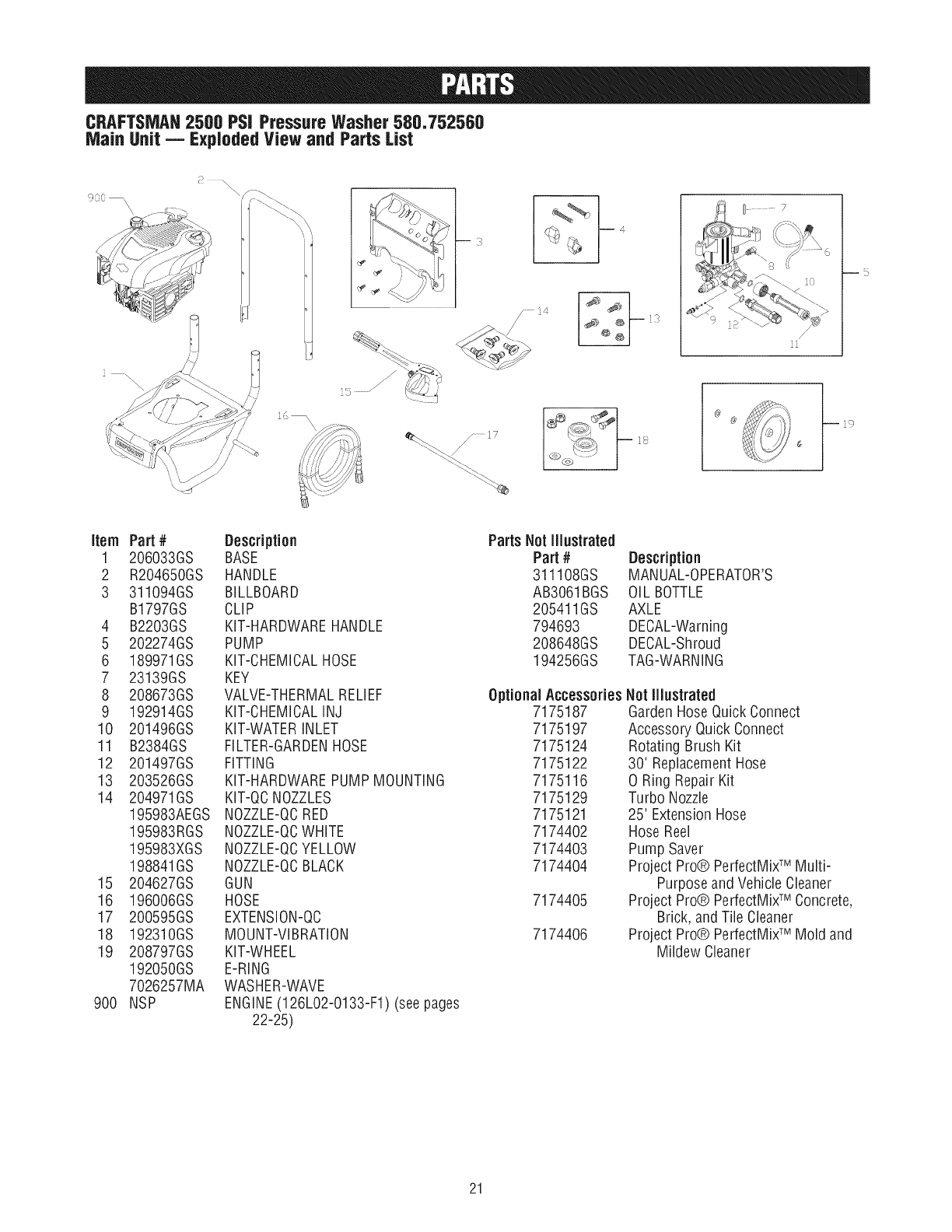 User Manual: Craftsman 580752560 580752560 CRAFTSMAN PRESSURE WASHER - Manuals and Guides View the owners manual for your CRAFTSMAN PRESSURE WASHER #580752560. Home:Lawn & Garden Parts:Craftsman Parts:Craftsman PRESSURE WASHER Manual