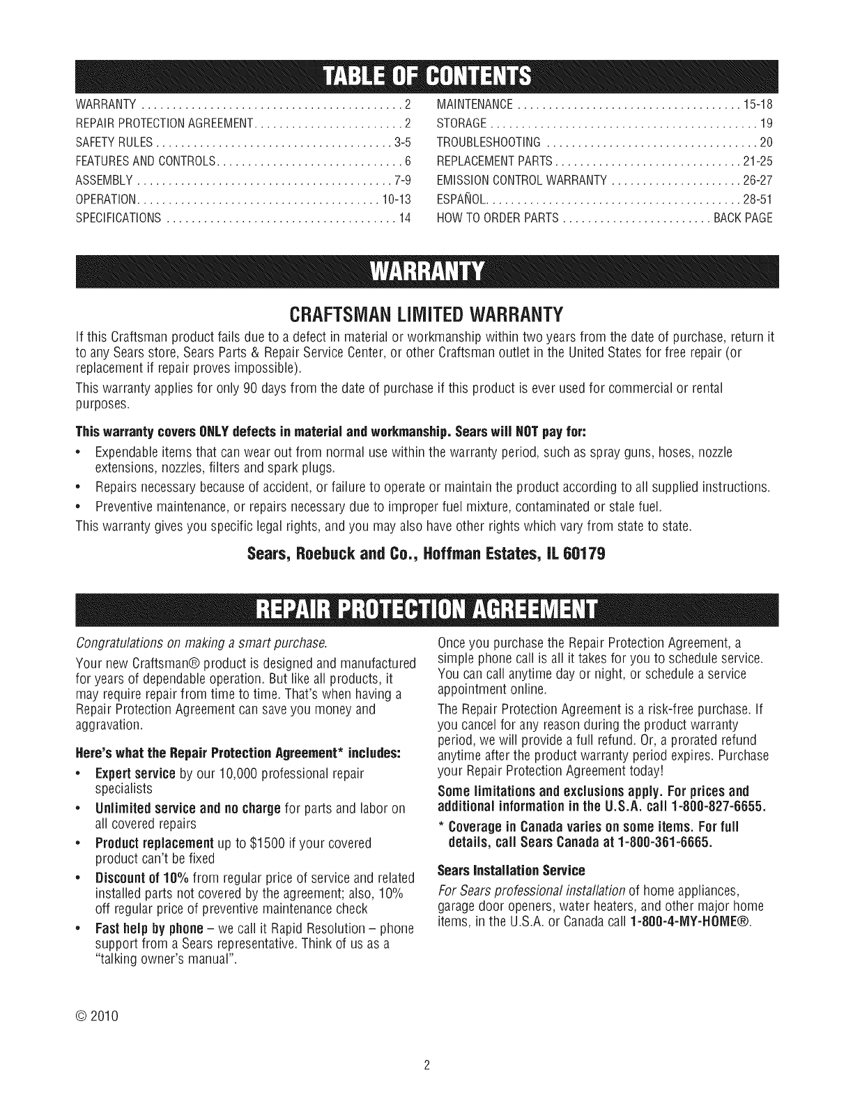 If this Craftsman product fails due to a defect in material or workmanship within two years from the date of purchase, return it