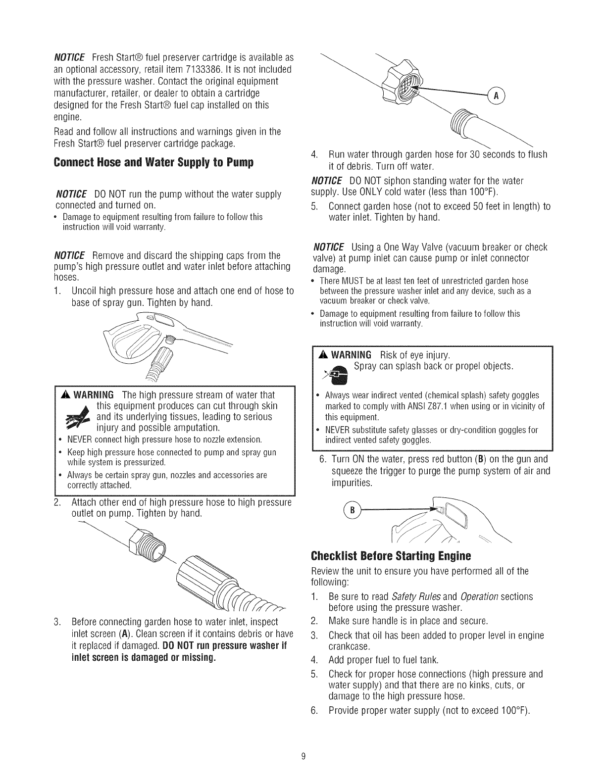 CRAFTSMAN Power Washer, Gas Manual L0912347 CRAFTSMAN Power Washer, Gas Owner's Manual, CRAFTSMAN Power Washer, Gas installation guides