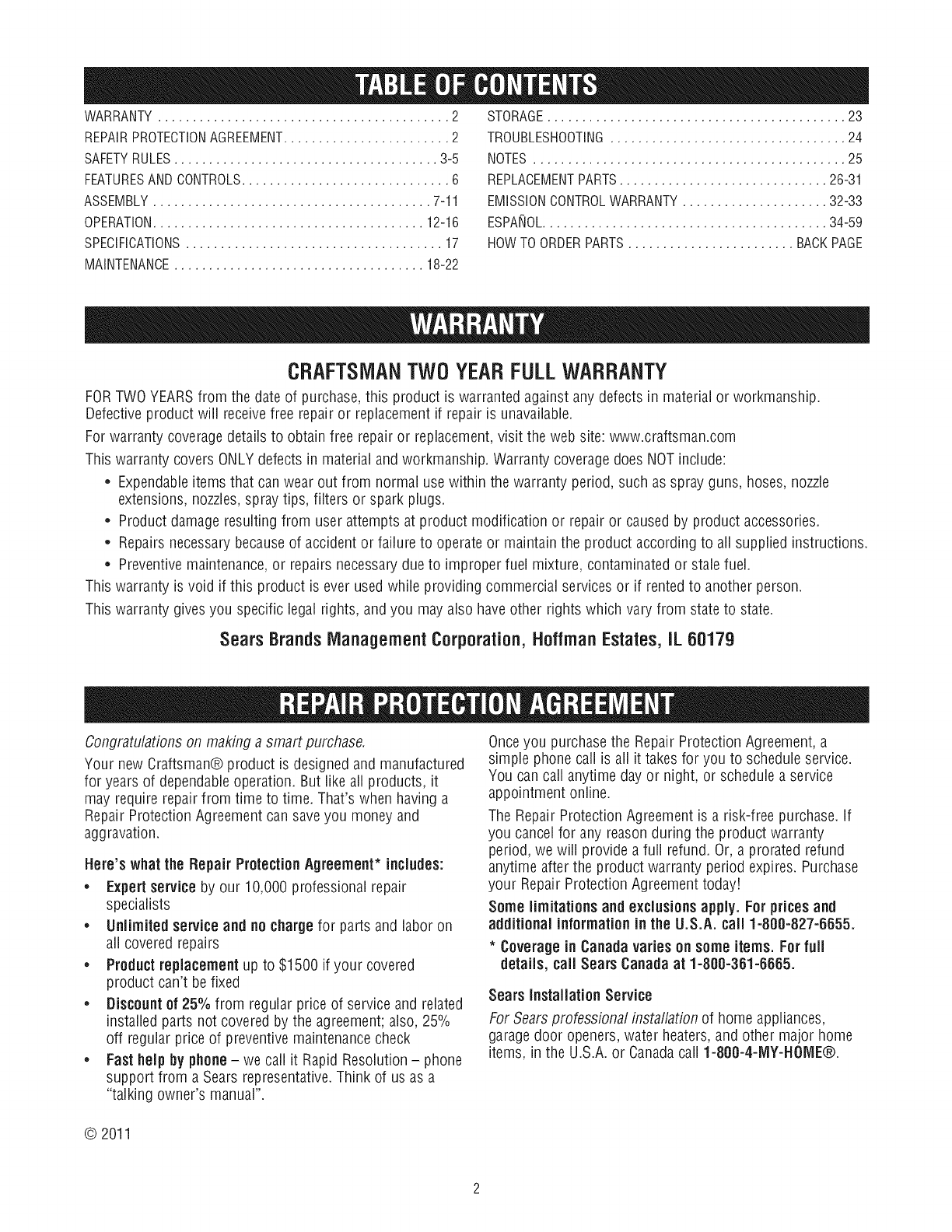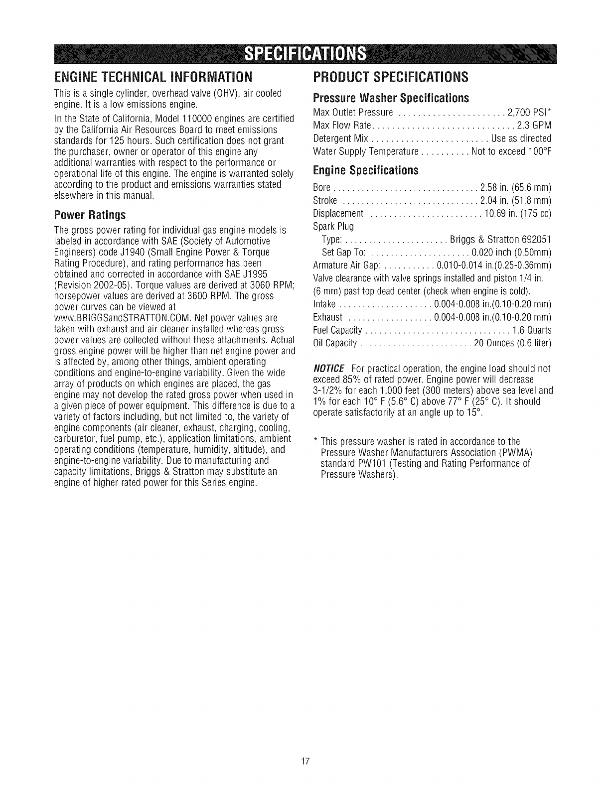 Craftsman 580752920 1112462L User Manual PRESSURE WASHER Manuals And Guides