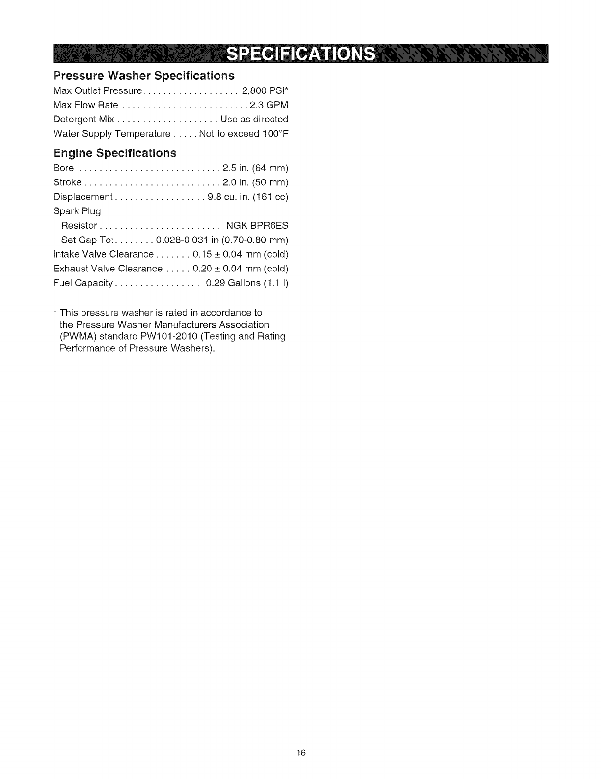 * This pressure washer is rated in accordance to the Pressure Washer Manufacturers Association