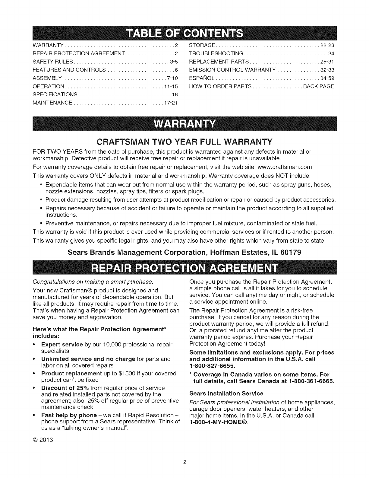 CRAFTSMAN TWO YEAR FULL WARRANTY