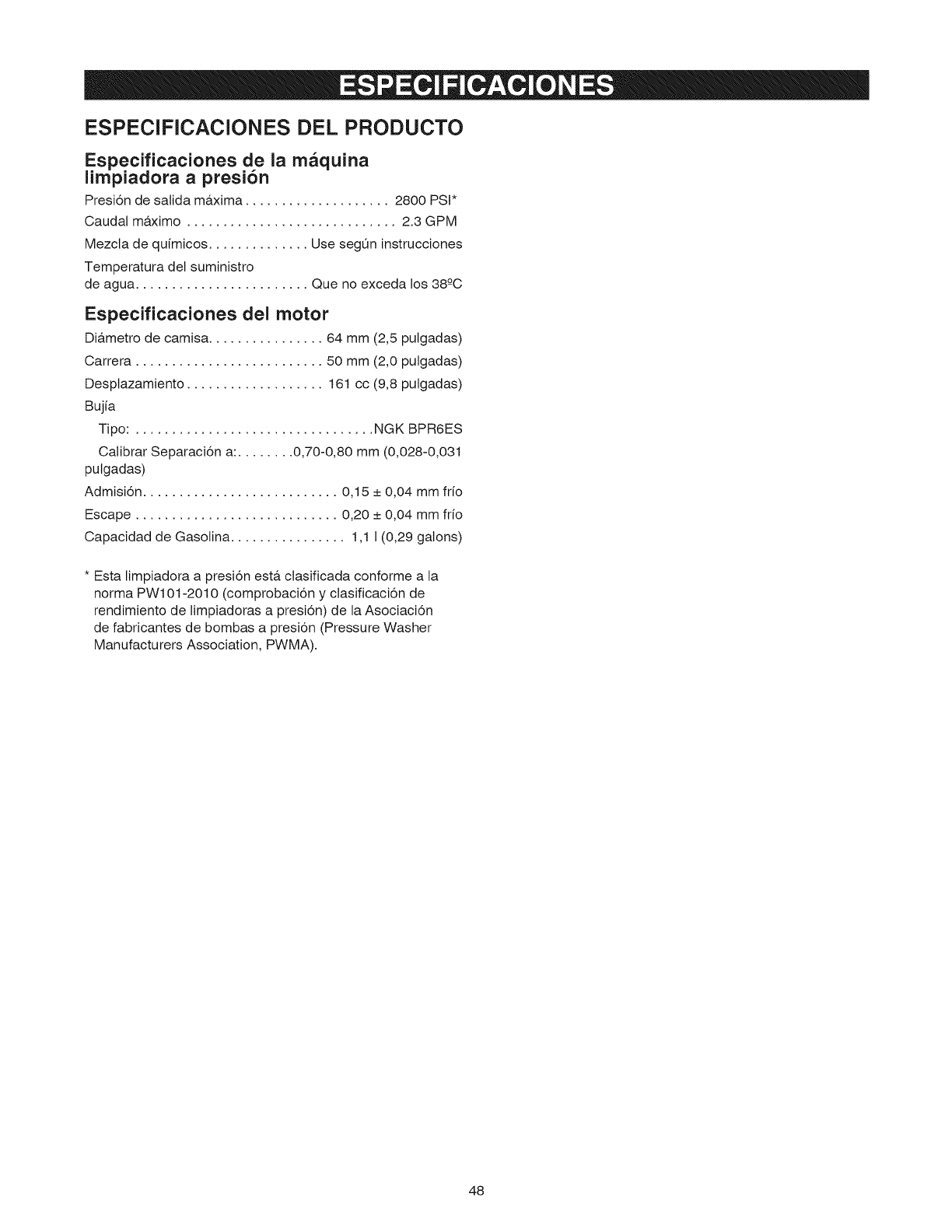 a presi6n) de la Asociaci6n de fabricantes de bombas a presi6n (Pressure Washer Manufacturers Association, PWMA).