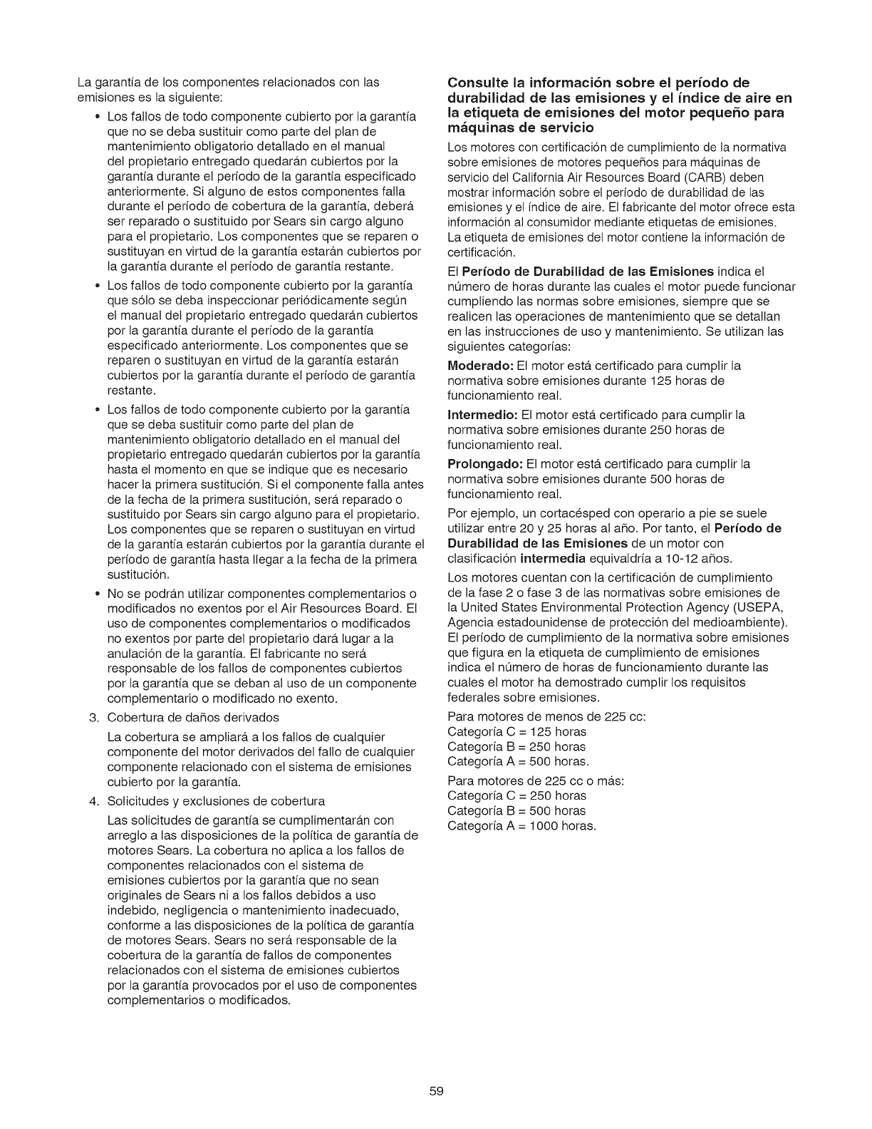 emisiones y el indice de aire. El fabricante del motor ofrece esta