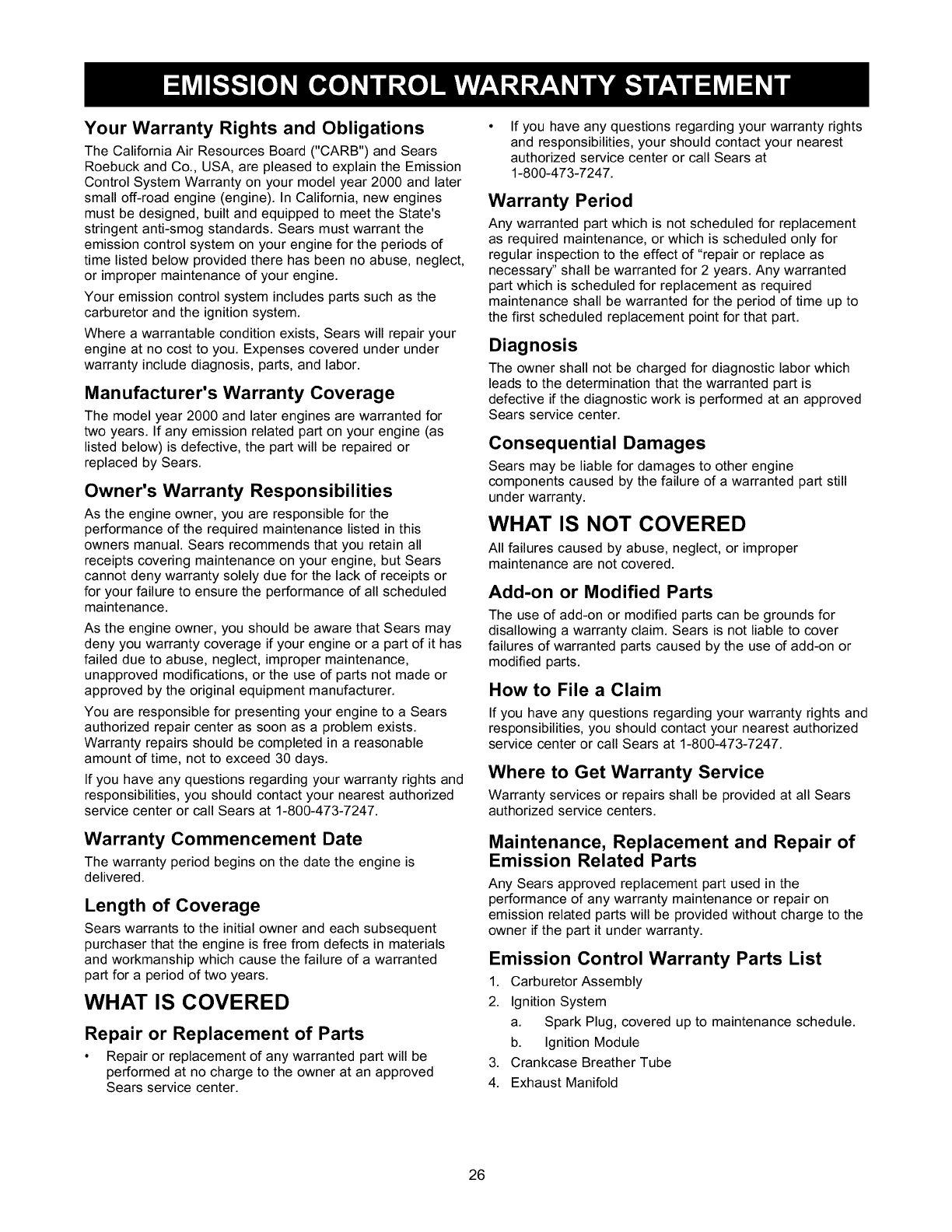 according to the instructions in the owner's manual, Sears will repair, free of charge, any defect in material and