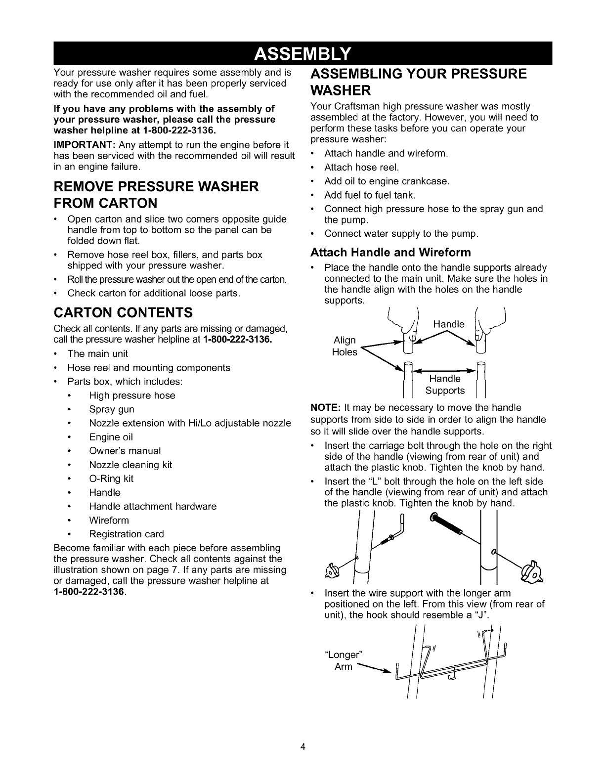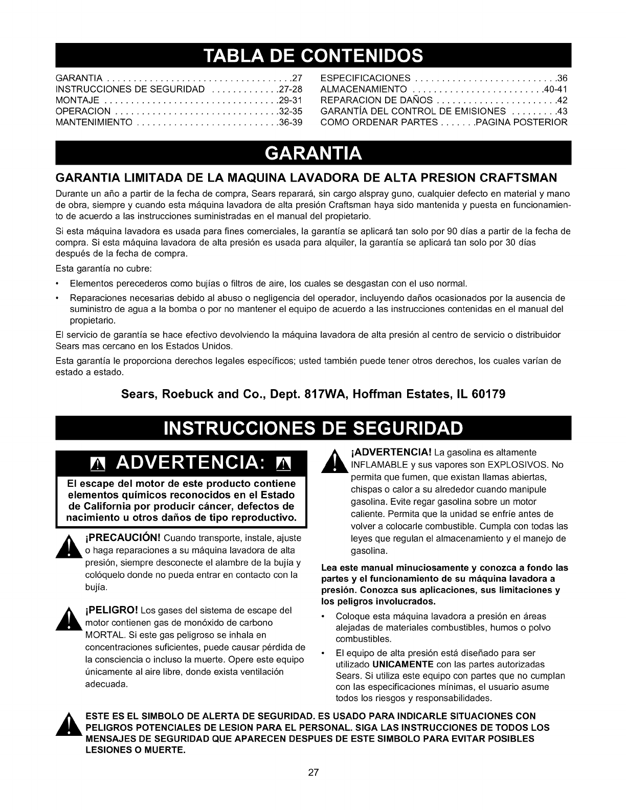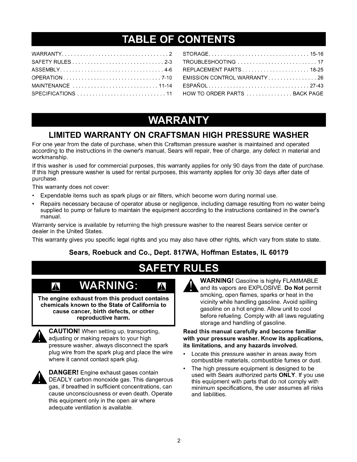 CRAFTSMAN Power Washer, Gas Manual L0209063 CRAFTSMAN Power Washer, Gas Owner's Manual, CRAFTSMAN Power Washer, Gas installation guides
