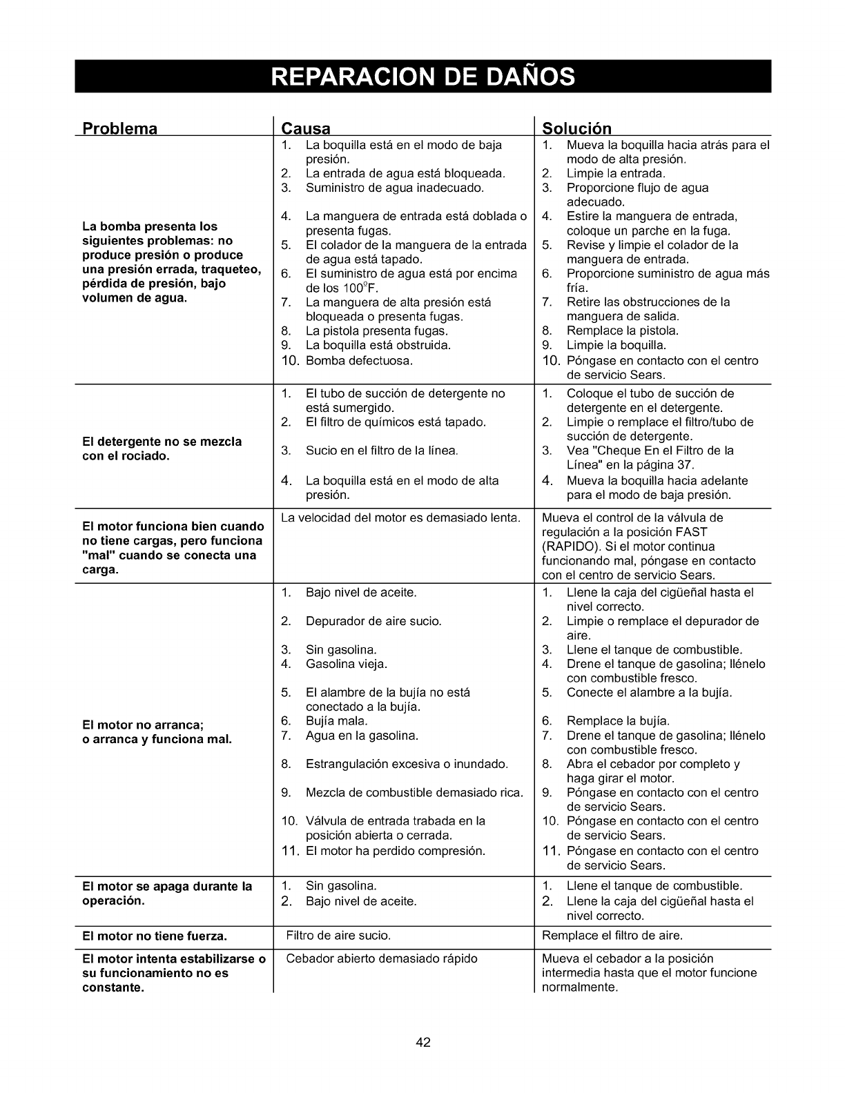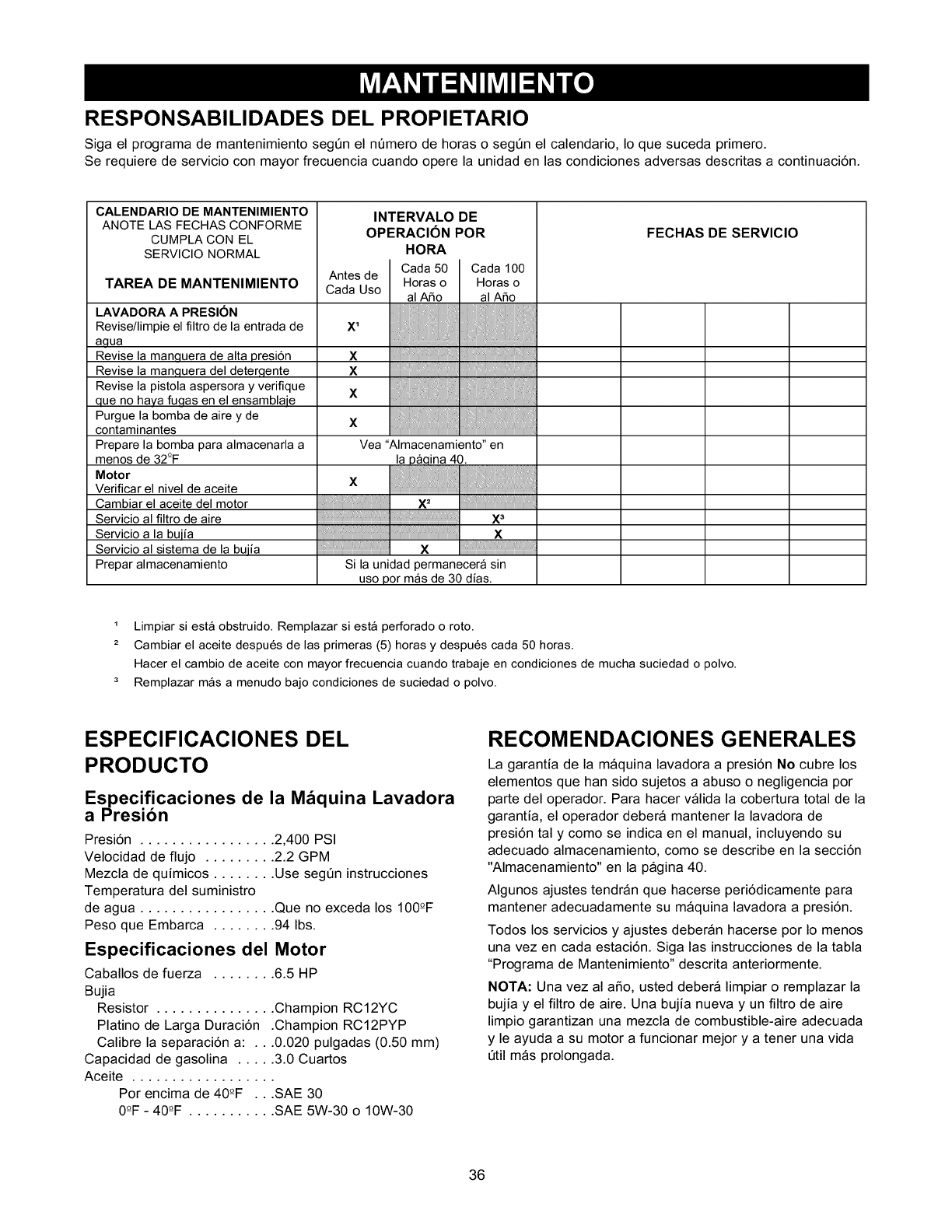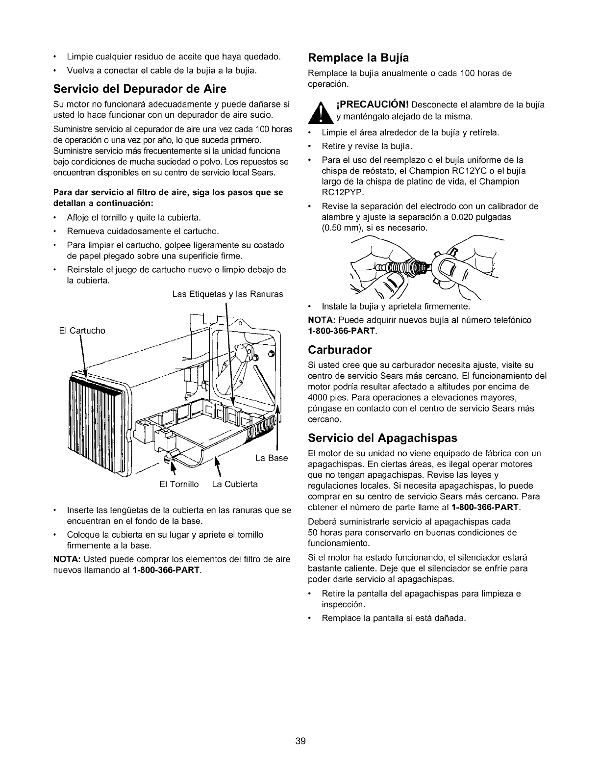Usted es responsable de Ilevar su motor a un centro de reparaci6n
