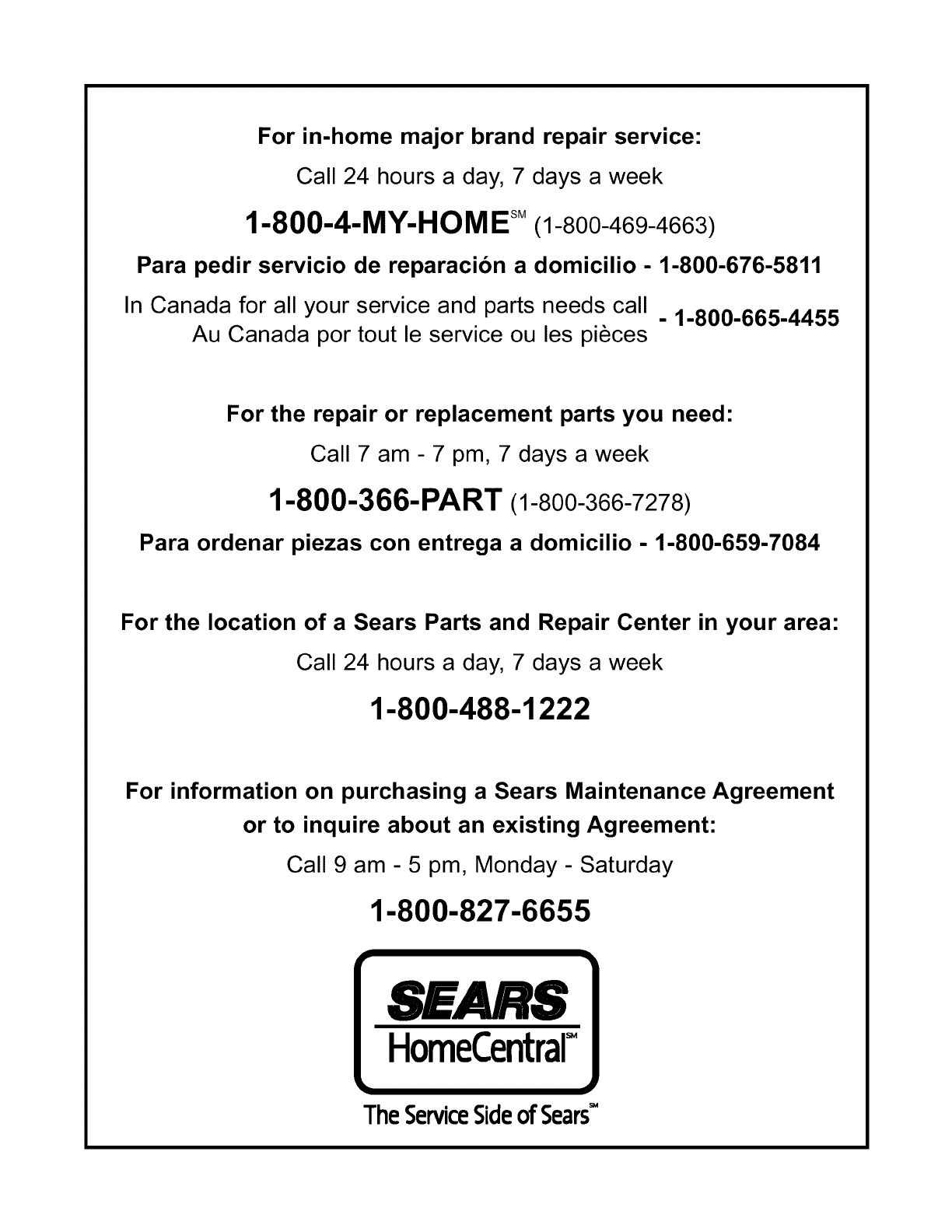 autorizado mas cercano o Ilamar a Sears al 1-800-473-7247.