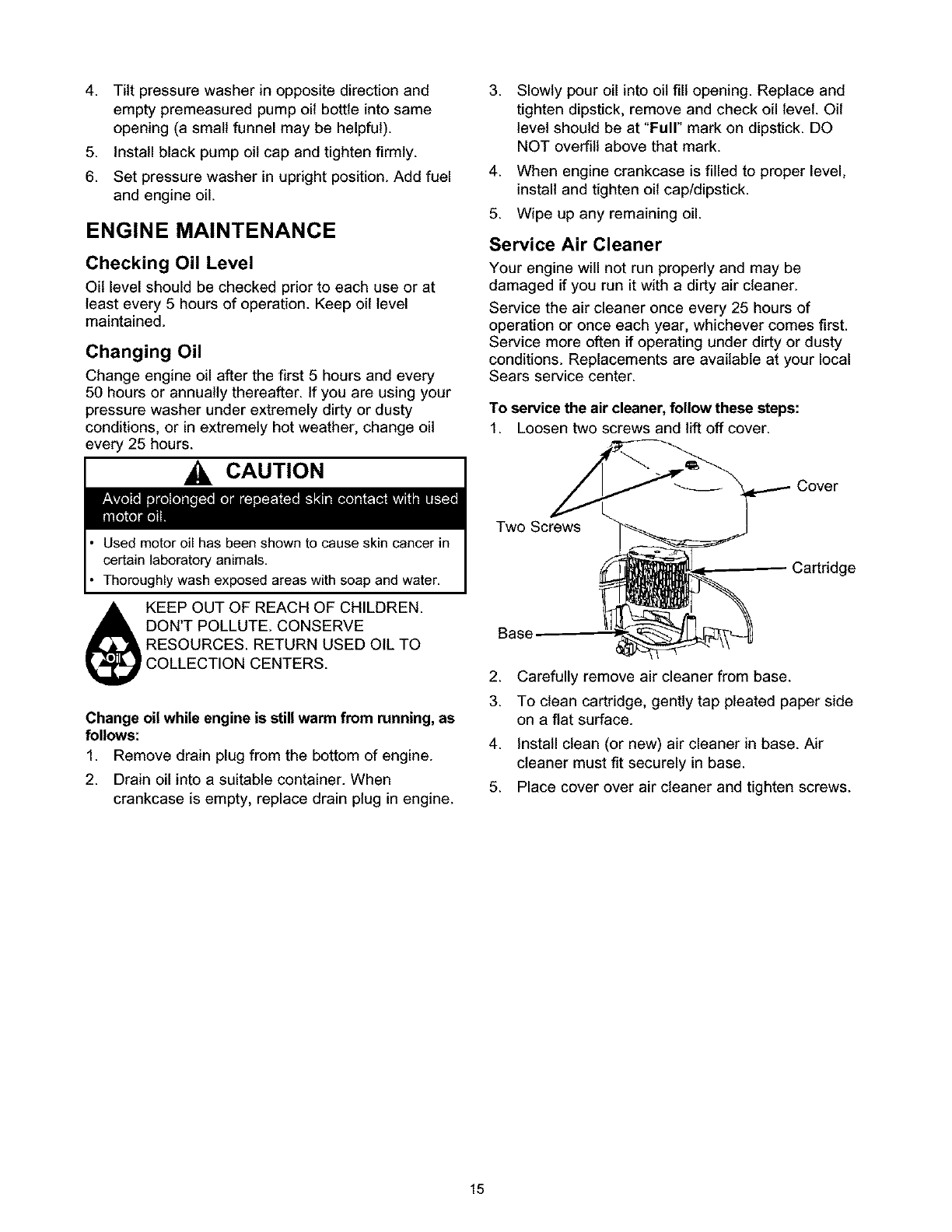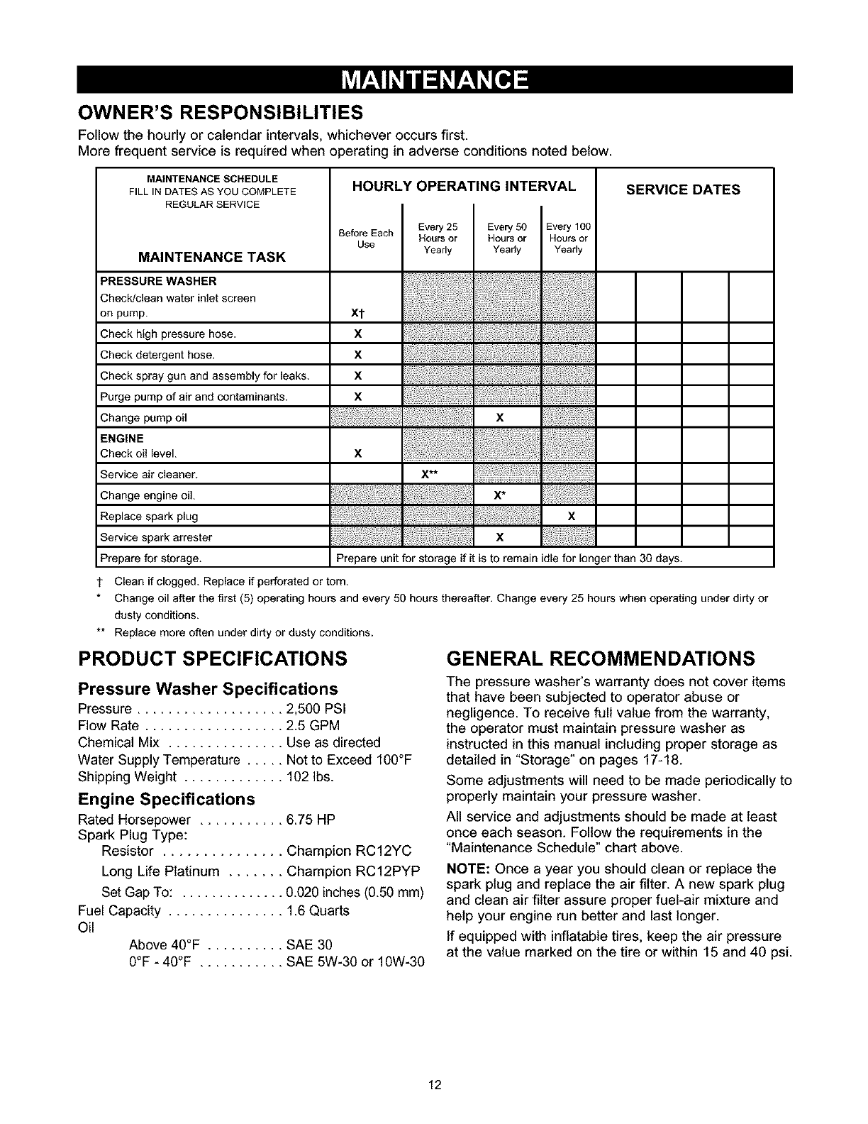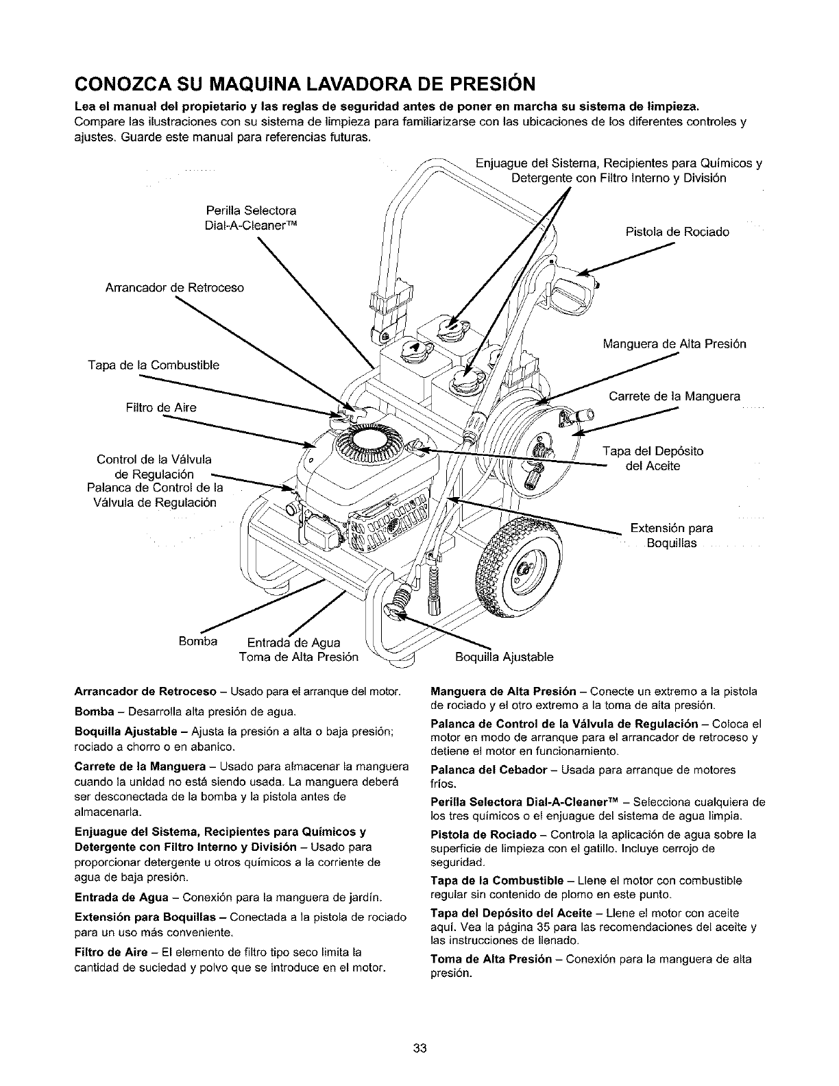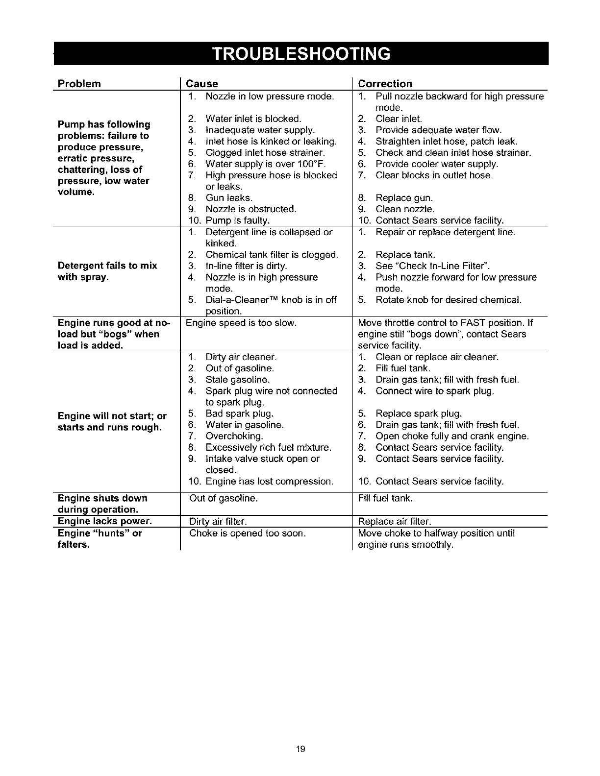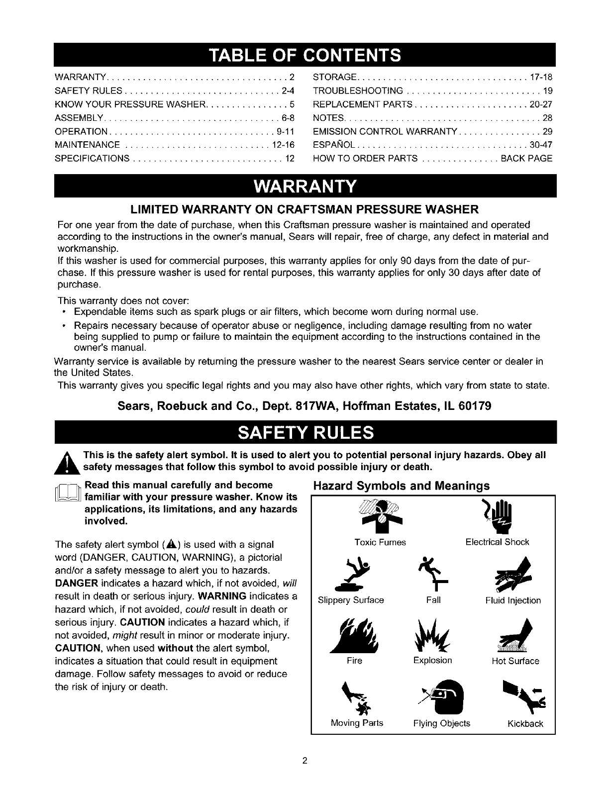 Warranty service is available by returning the pressure washer to the nearest Sears service center or dealer in