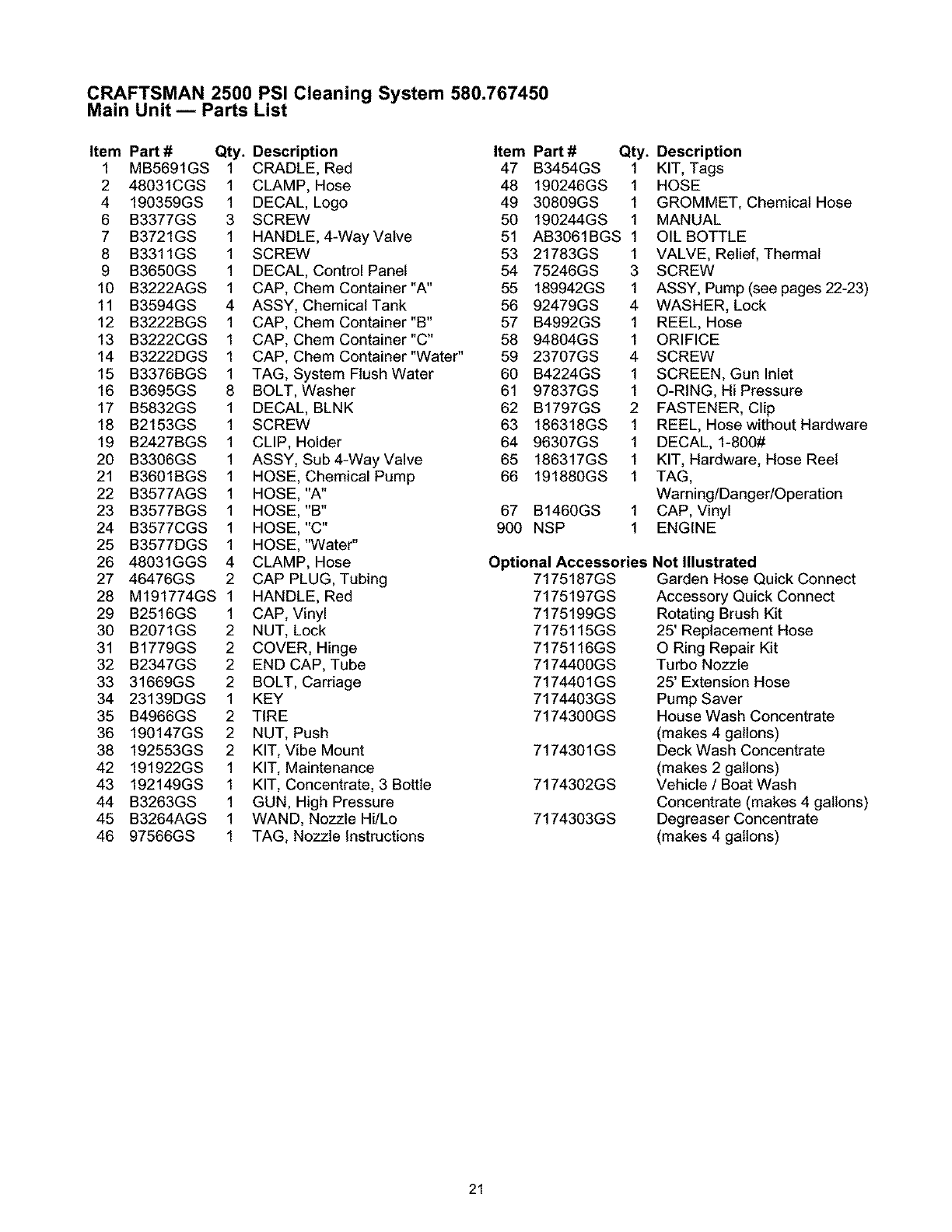 User Manual: Craftsman 580767450 580767450 CRAFTSMAN PRESSURE WASHER - Manuals and Guides View the owners manual for your CRAFTSMAN PRESSURE WASHER #580767450. Home:Lawn & Garden Parts:Craftsman Parts:Craftsman PRESSURE WASHER Manual