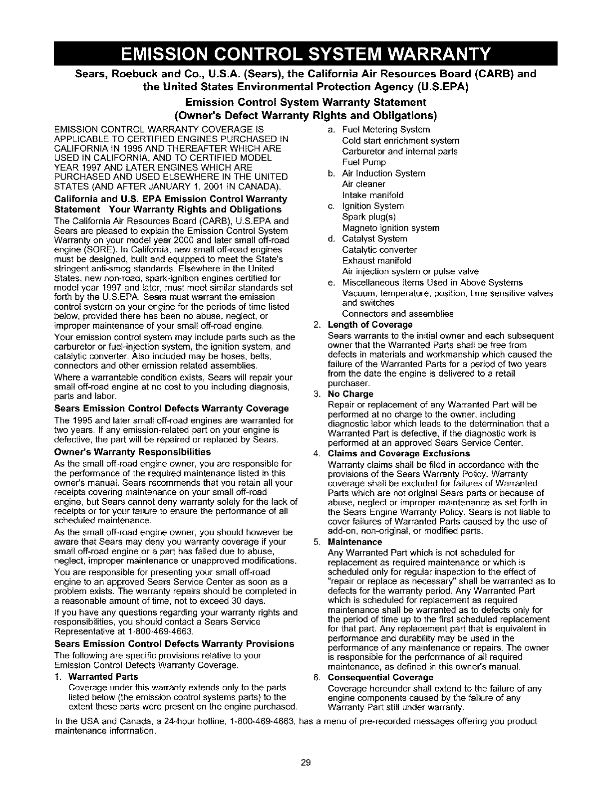 according to the instructions in the owner's manual, Sears will repair, free of charge, any defect in material and