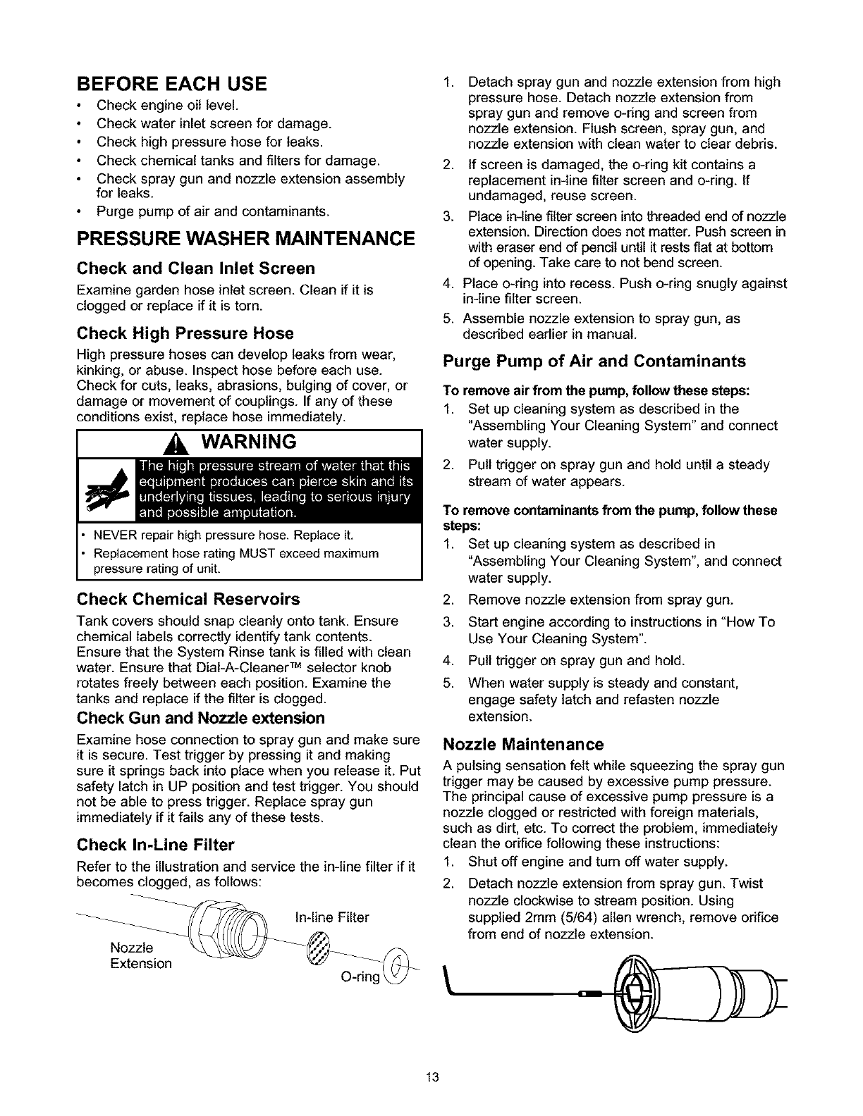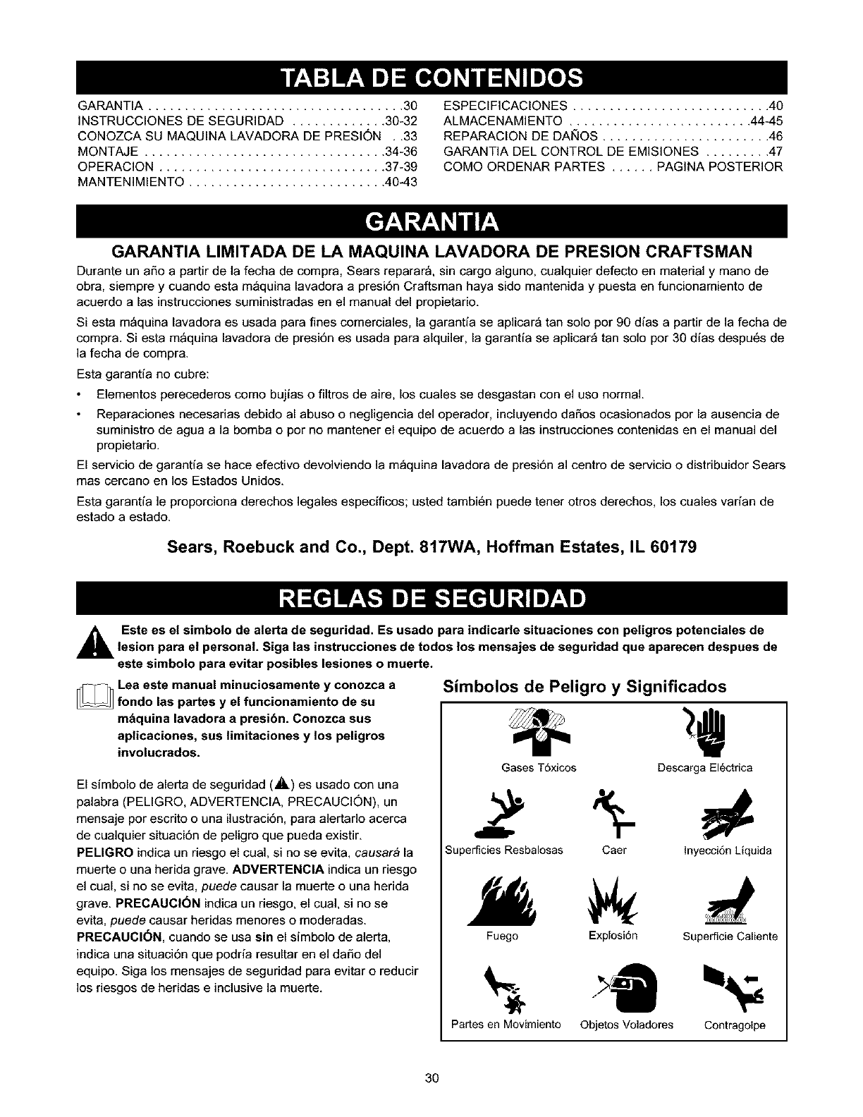 CRAFTSMAN Power Washer, Gas Manual L0304145 CRAFTSMAN Power Washer, Gas Owner's Manual, CRAFTSMAN Power Washer, Gas installation guides