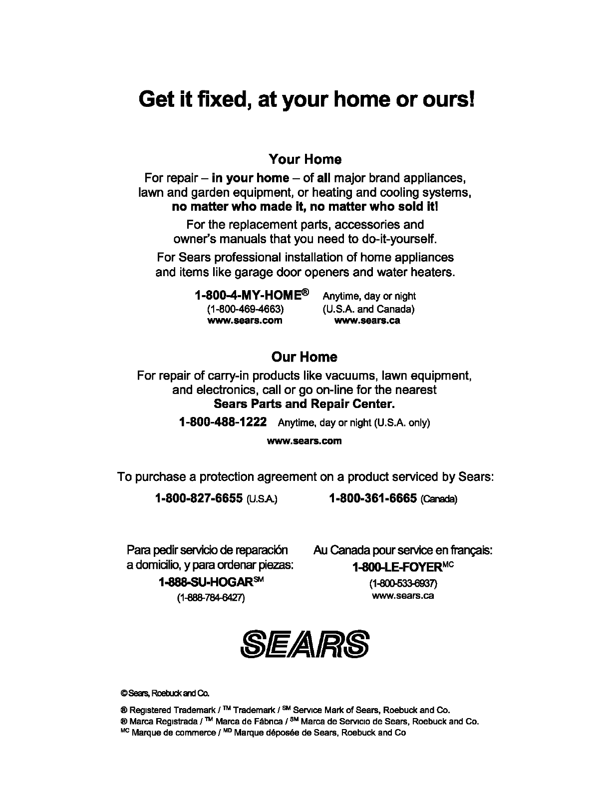 ®Registered Trademark /Trademark /Service Mark of Sears, Roebuck and Co.