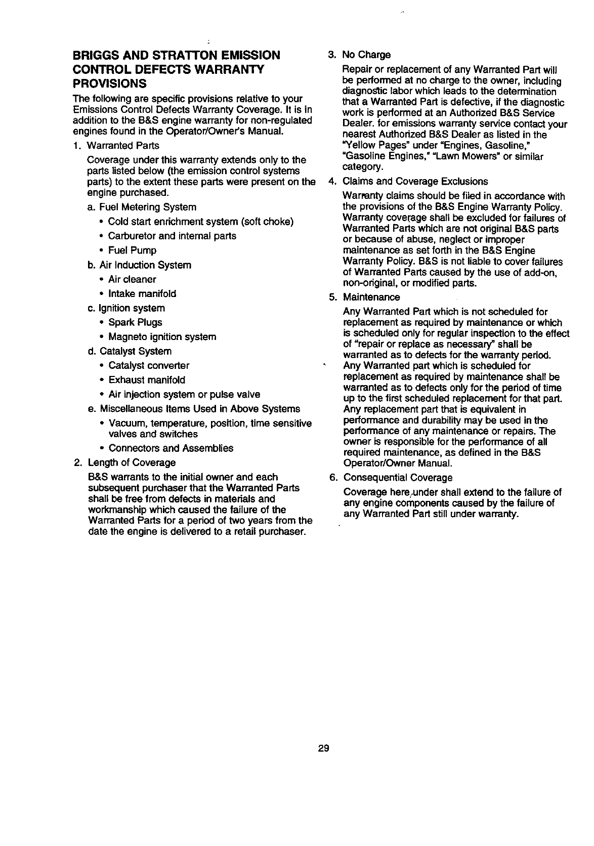 •Expendable items such as spark plugs or air filters, which become worn dudng normal use.