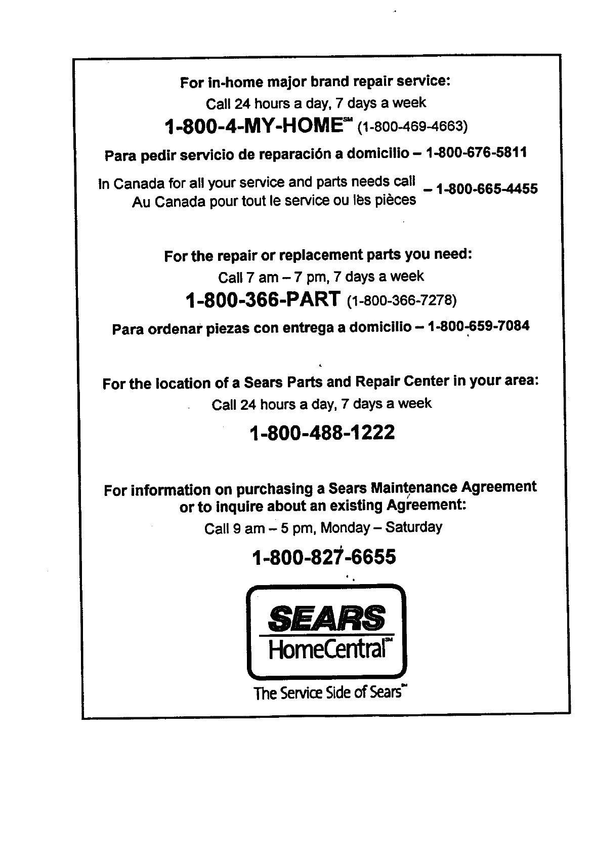 NEAREST SEARS SERVICE CENTER OR DEALER IN THE UNITED STATES.