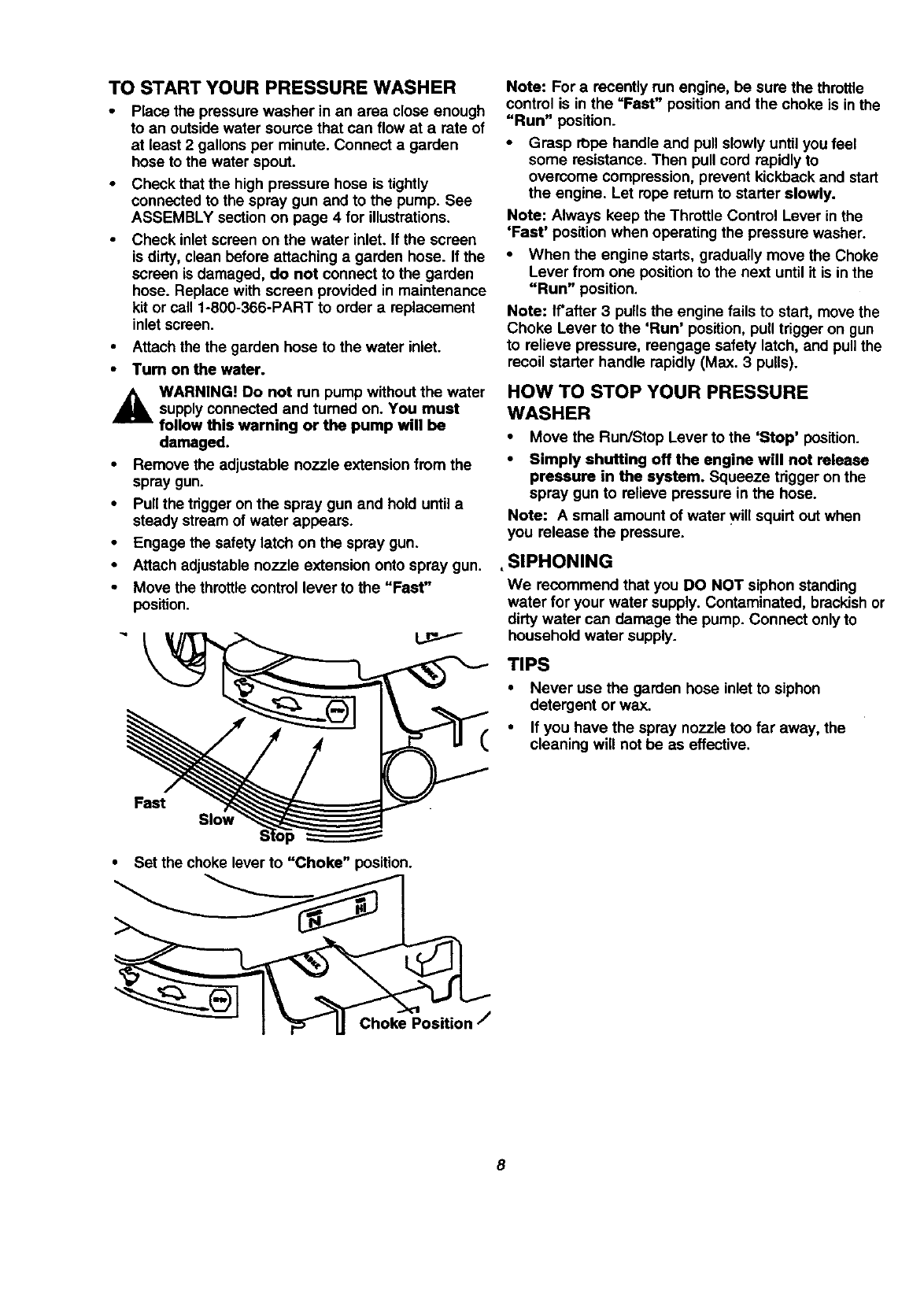 CRAFTSMAN Power Washer, Gas Manual L9050342 CRAFTSMAN Power Washer, Gas Owner's Manual, CRAFTSMAN Power Washer, Gas installation guides