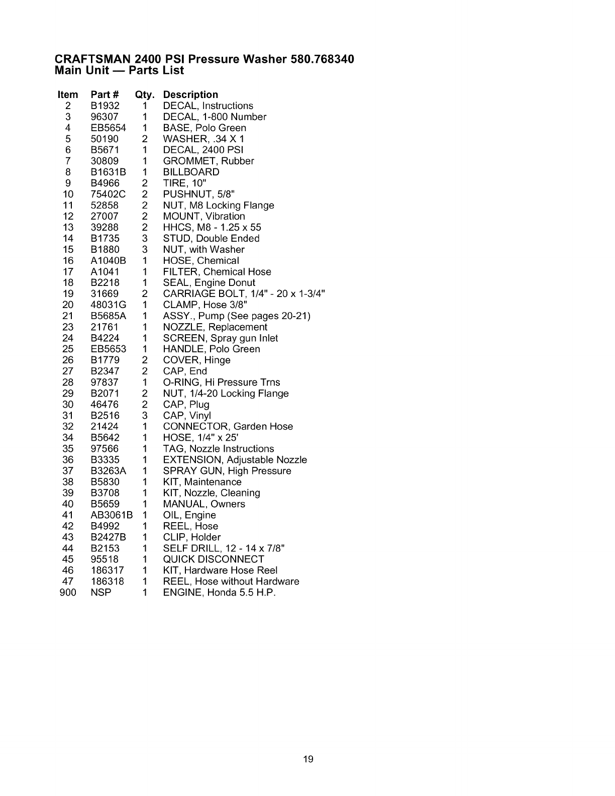 User Manual: Craftsman 580768340 580768340 CRAFTSMAN PRESSURE WASHER - Manuals and Guides View the owners manual for your CRAFTSMAN PRESSURE WASHER #580768340. Home:Lawn & Garden Parts:Craftsman Parts:Craftsman PRESSURE WASHER Manual