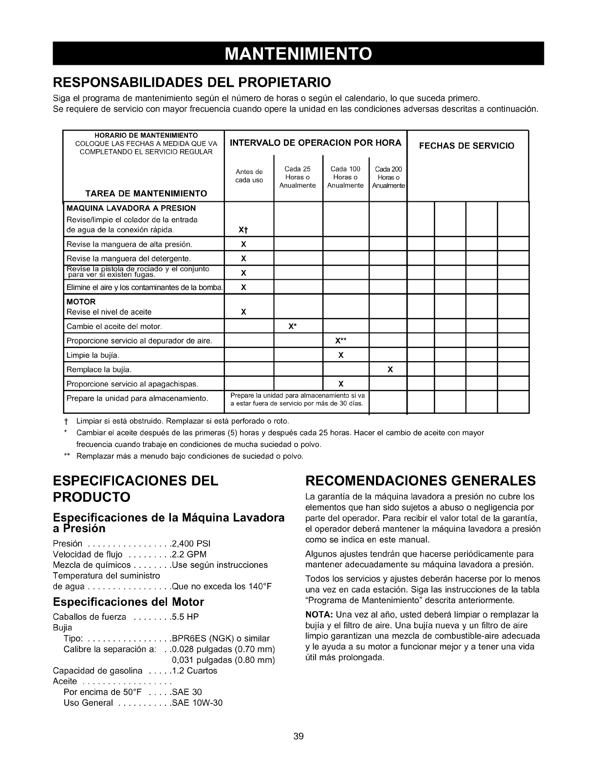 Usted es responsable de Ilevar su motor a un centro de reparaci6n