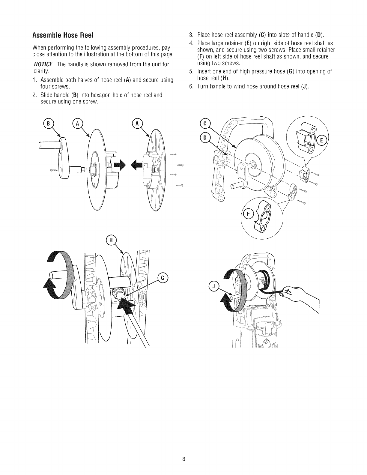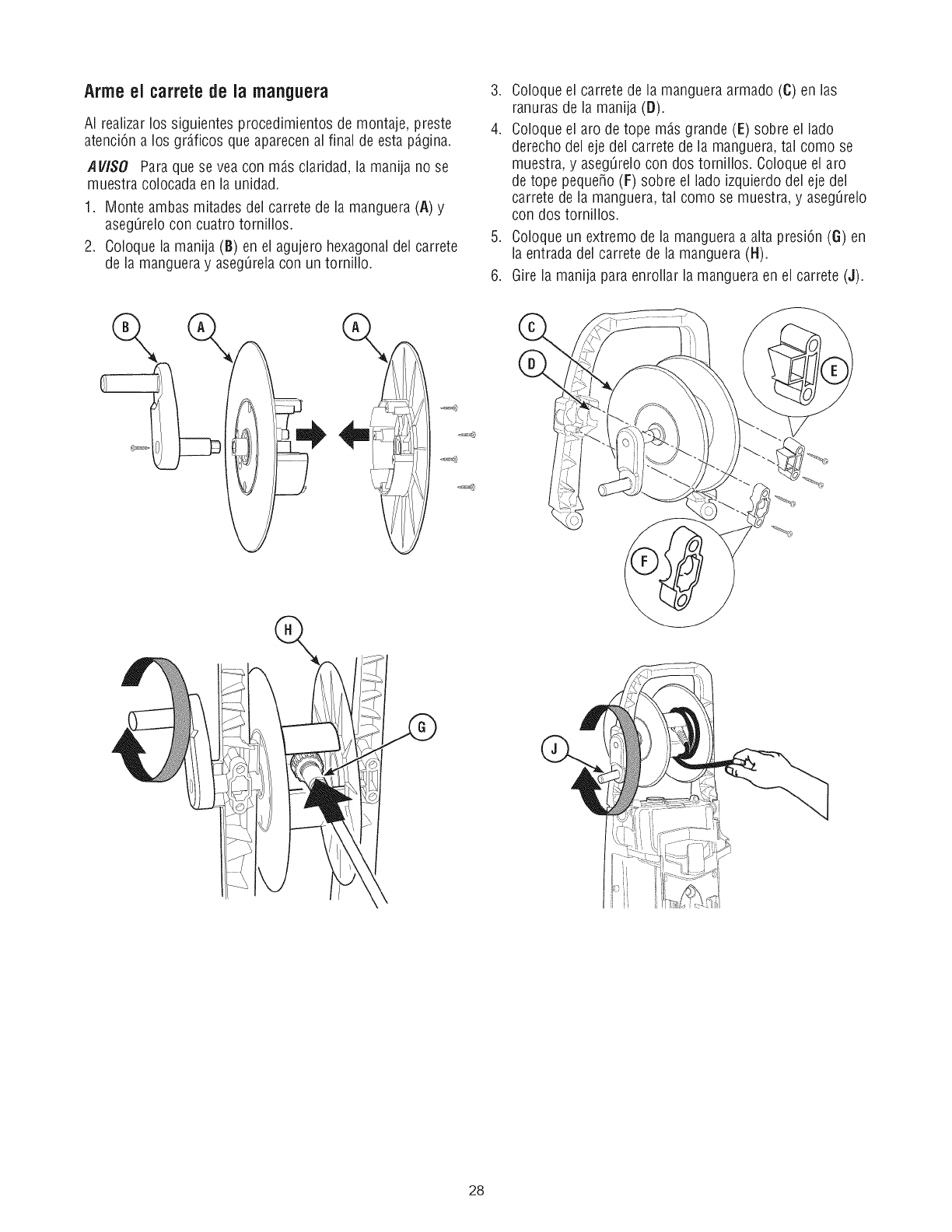2. Enrolle la manguera a alta presiOnen el carrete de la