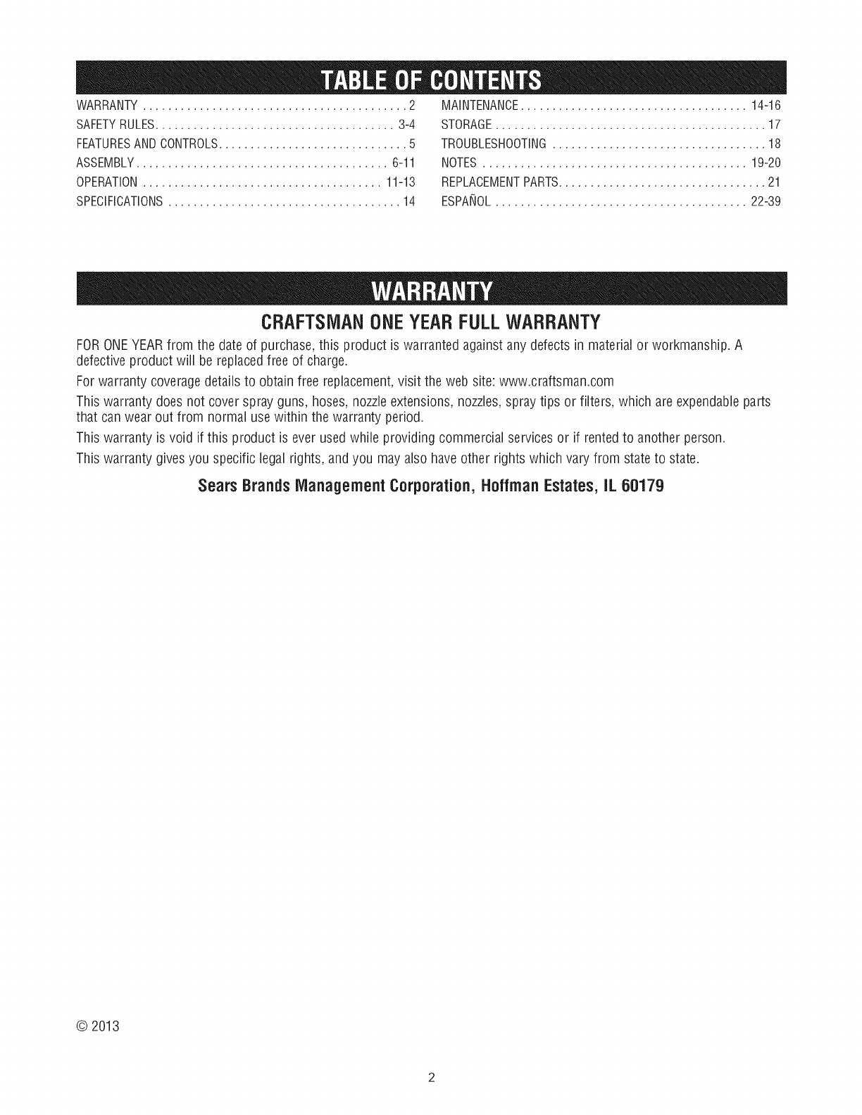 WARRANTY .......................................... 2
