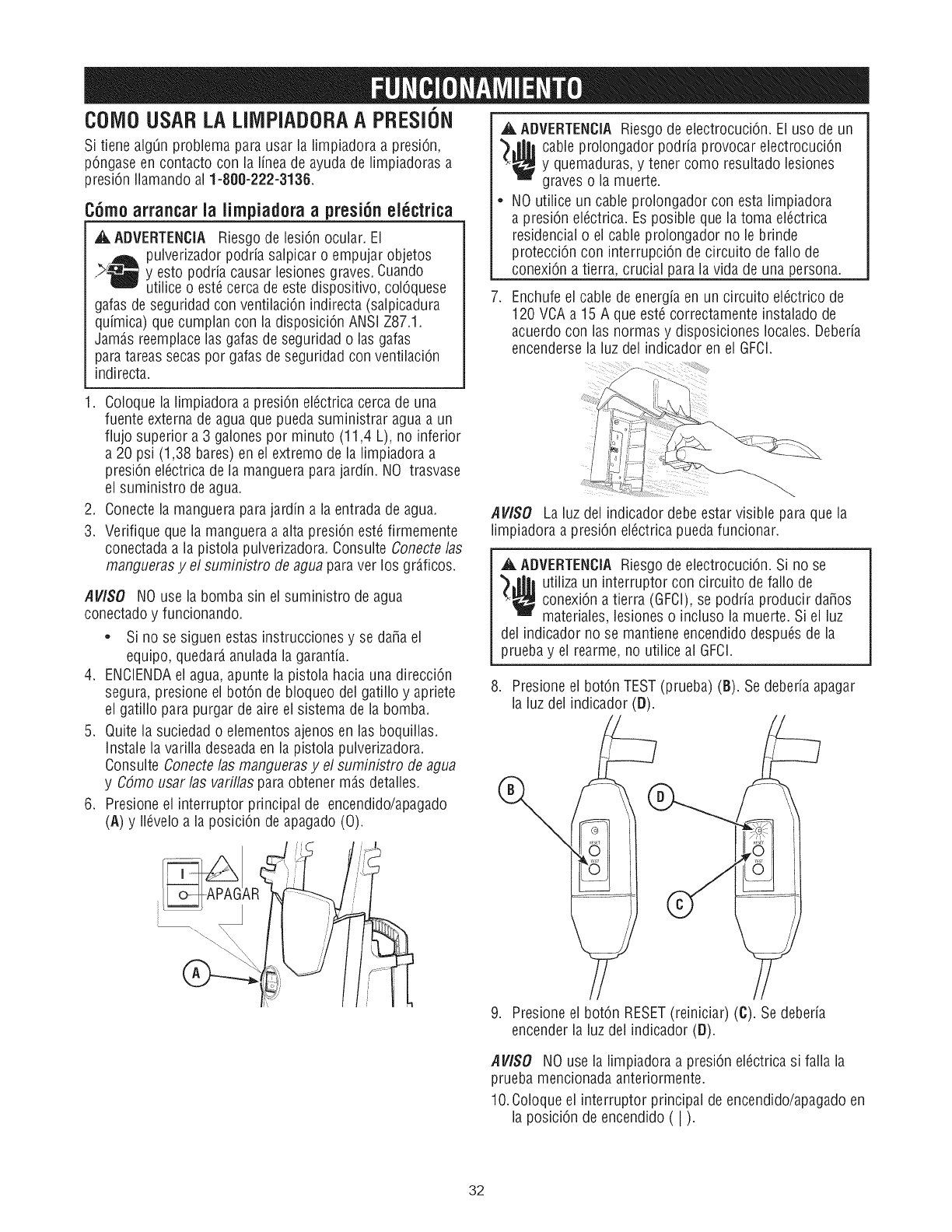 encendido ([). Reinicieel GFCI.