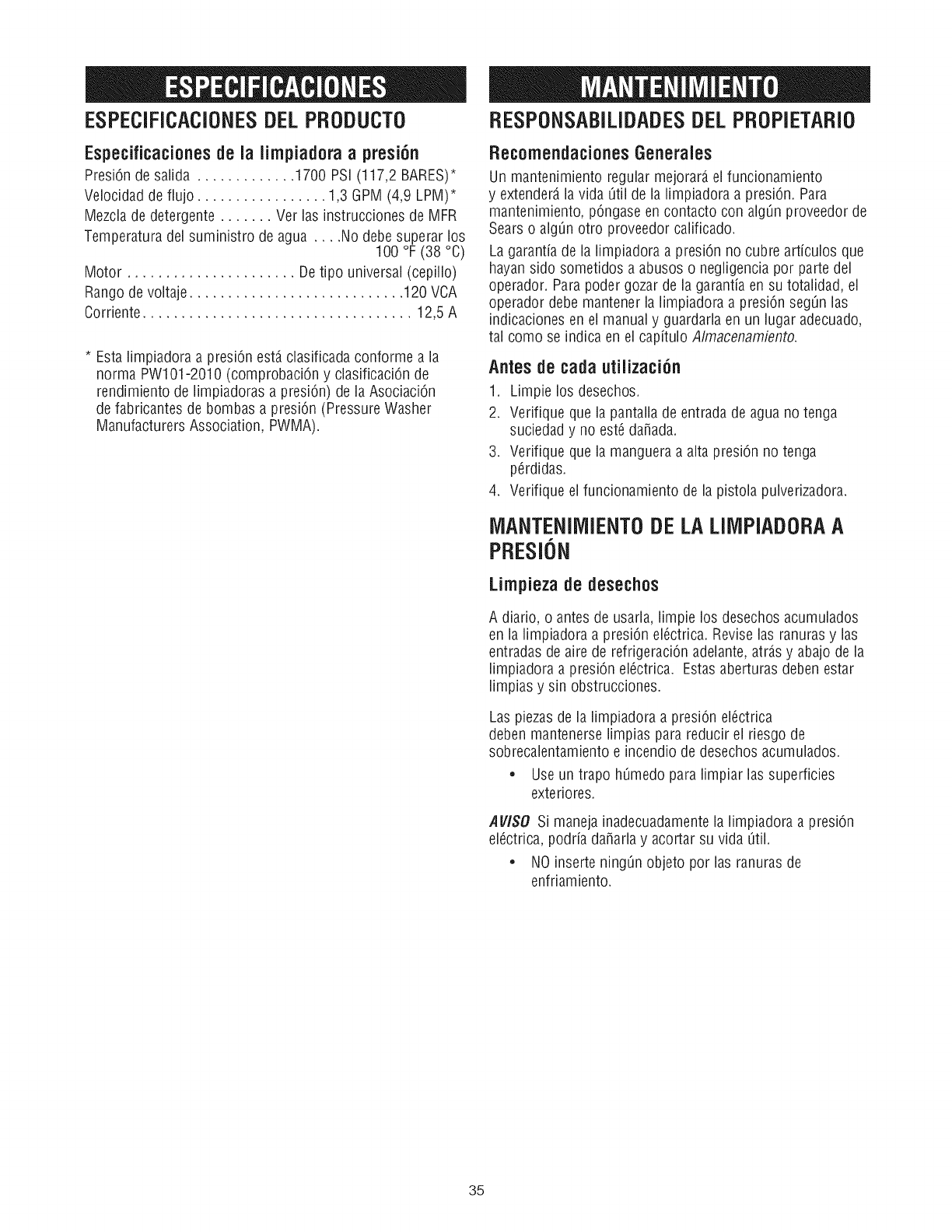 a presiOn) de la AsociaciOn defabricantes de bombas a presiOn (Pressure Washer Manufacturers Association, PWMA).