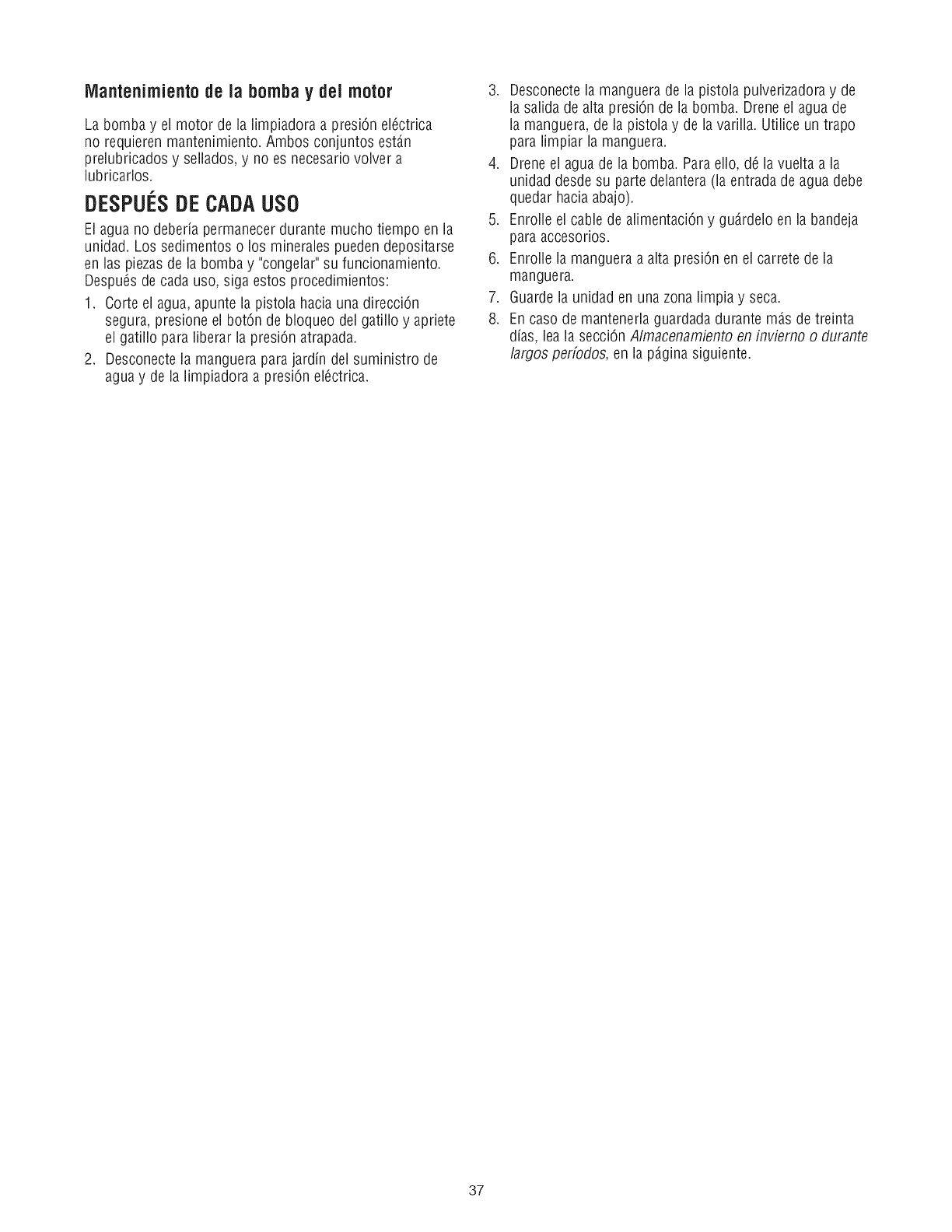 estOndesconectadasde ia bomba. Drene el agua de ia